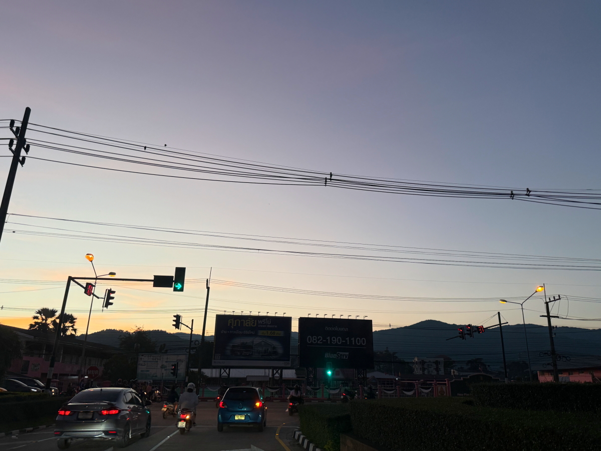 お決まりのメニュー終えて、国道に出る信号で夕陽