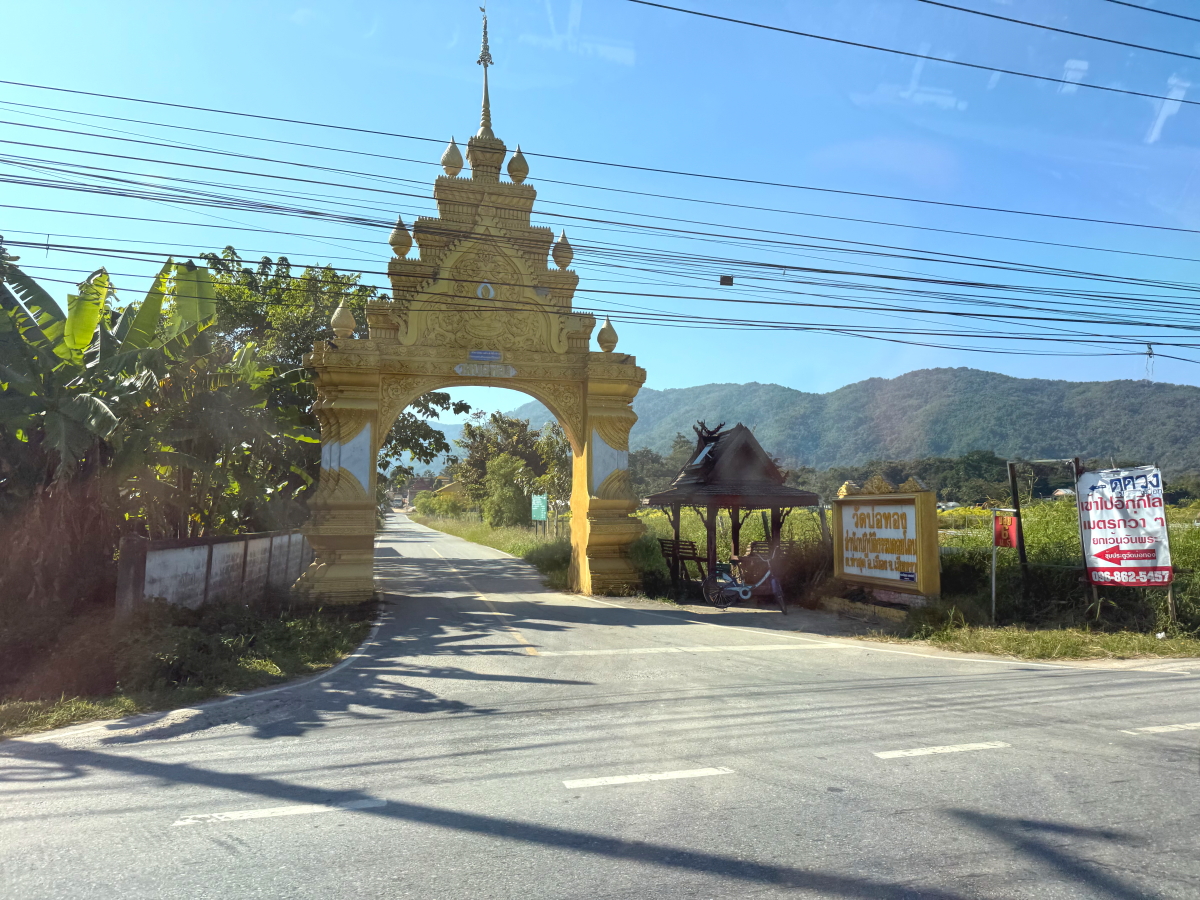 お寺に続く道路には、国道沿いの入り口に金の門