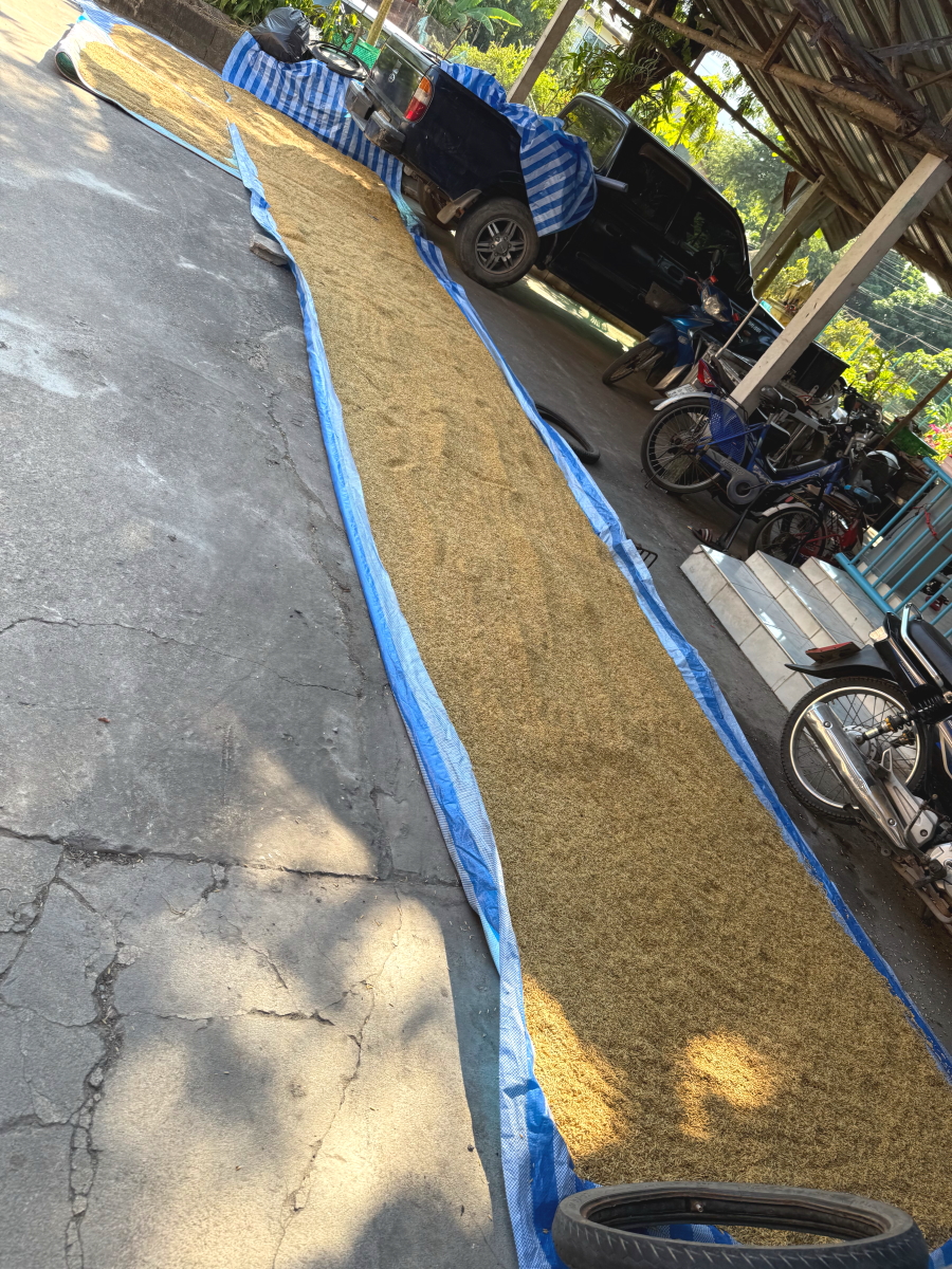 収穫したお米を天日干し