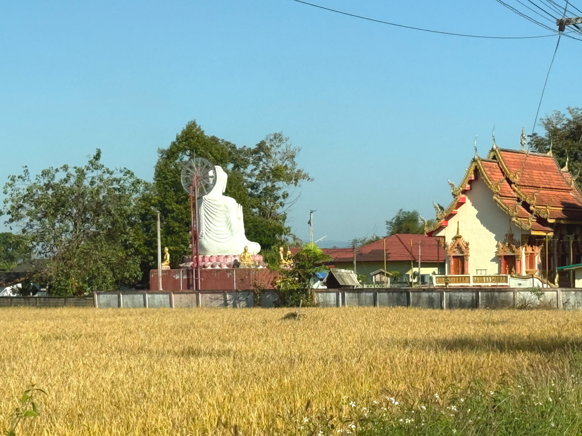 チビちゃんを幼稚園に迎えに行く途中のお寺の大仏様の後ろ姿