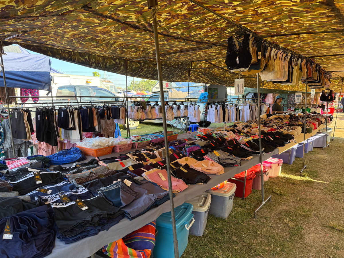 土曜市場にお邪魔します、大人気で市場エリアの外の道路にも屋台がはみ出してます