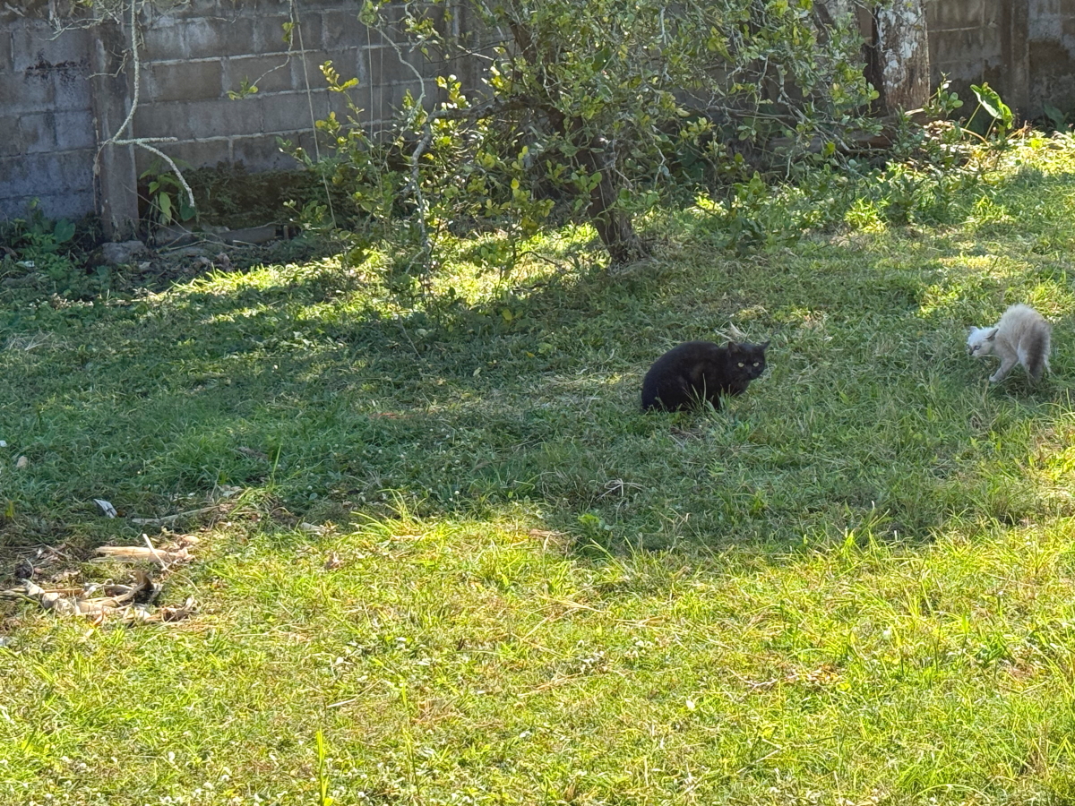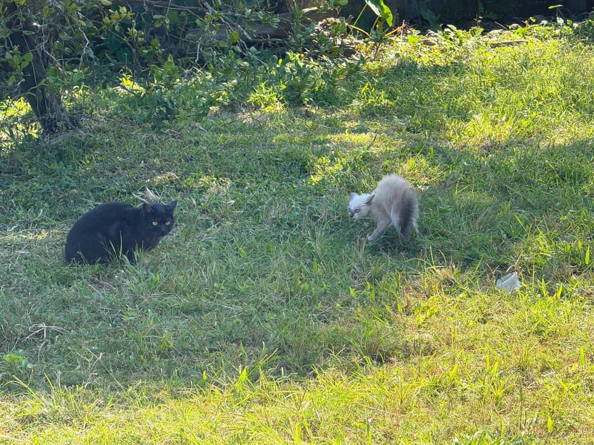 01,Dec,2025 うちの猫、隣の庭でよその猫と睨めっこ
