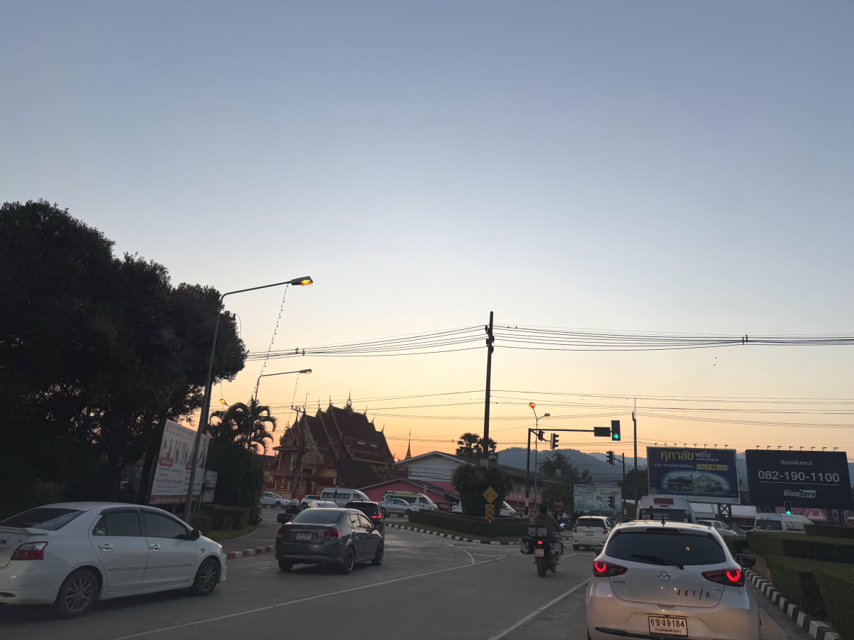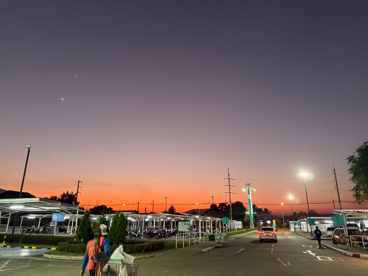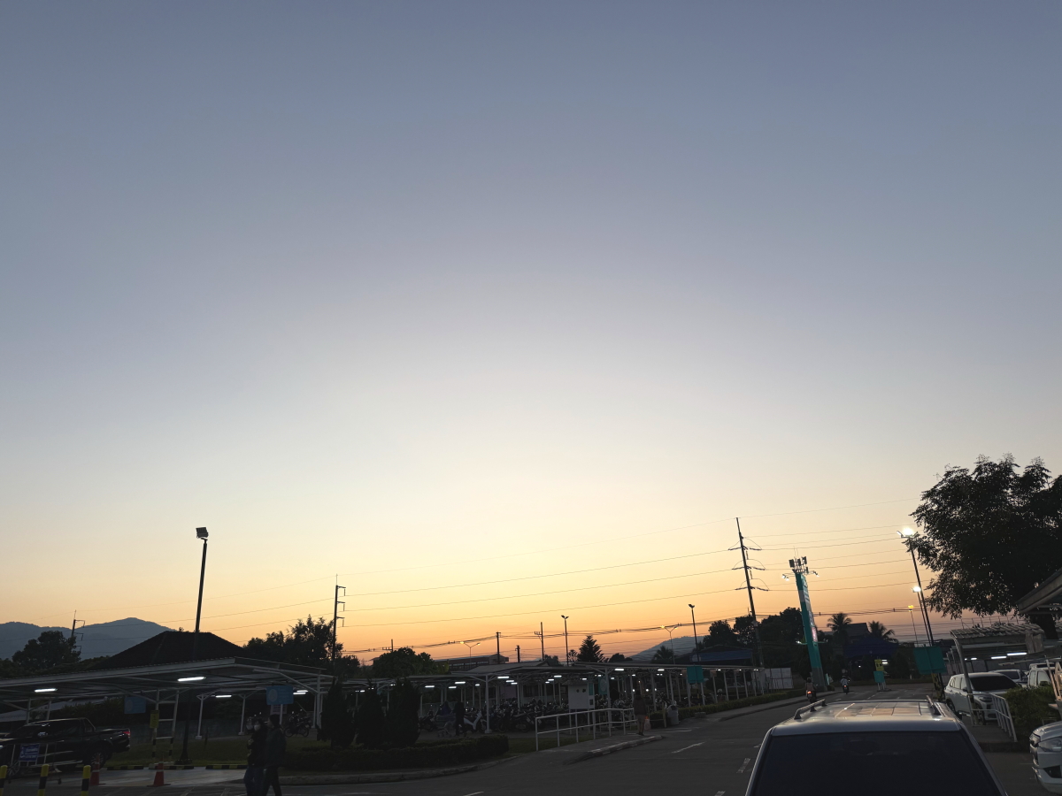 プールがメンテ時間で一旦食事に出かけます、昼間の本校舎も綺麗