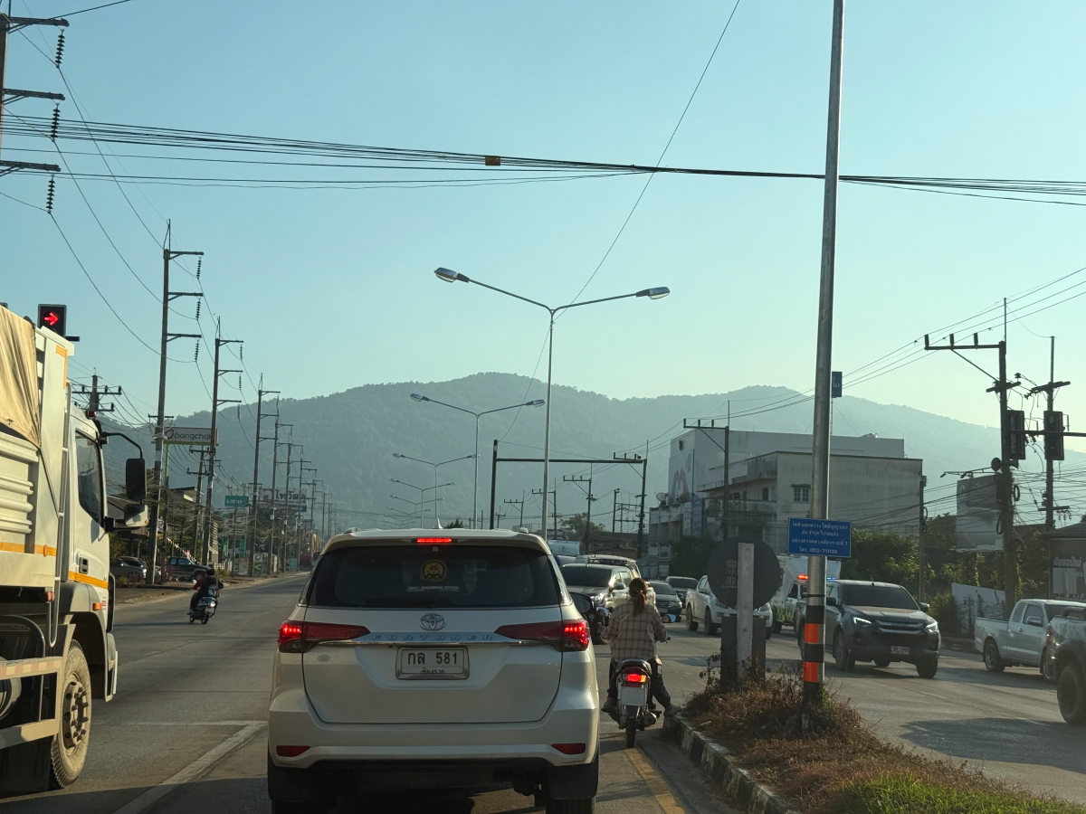 プールに向かう国道からは、山々が霞んで見えます