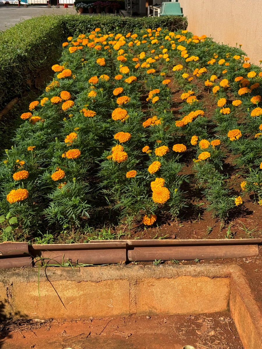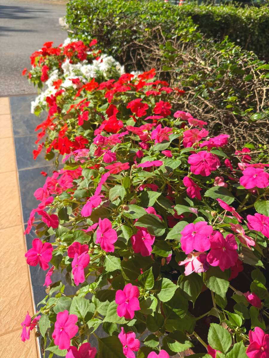 プール入り口の花壇のお花も、陽射しを浴びて鮮やか