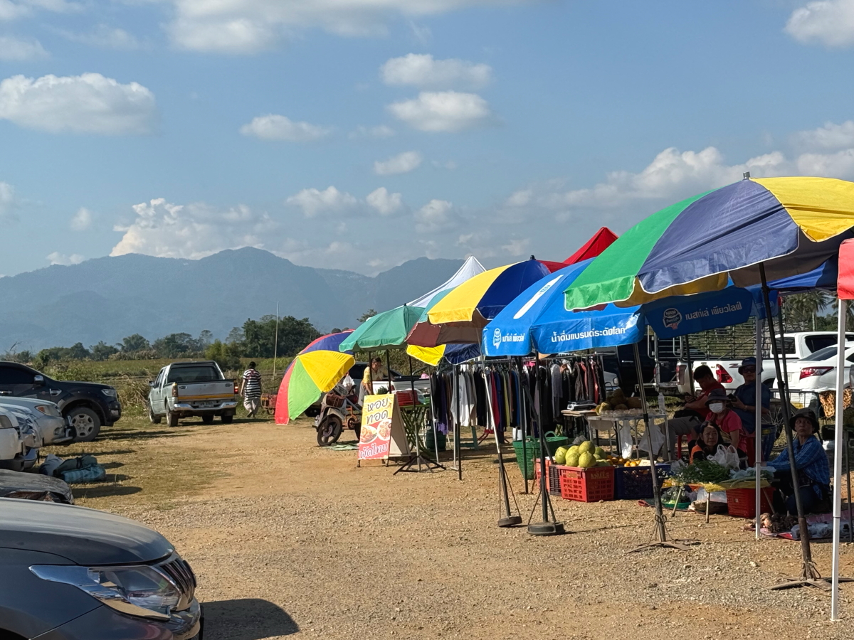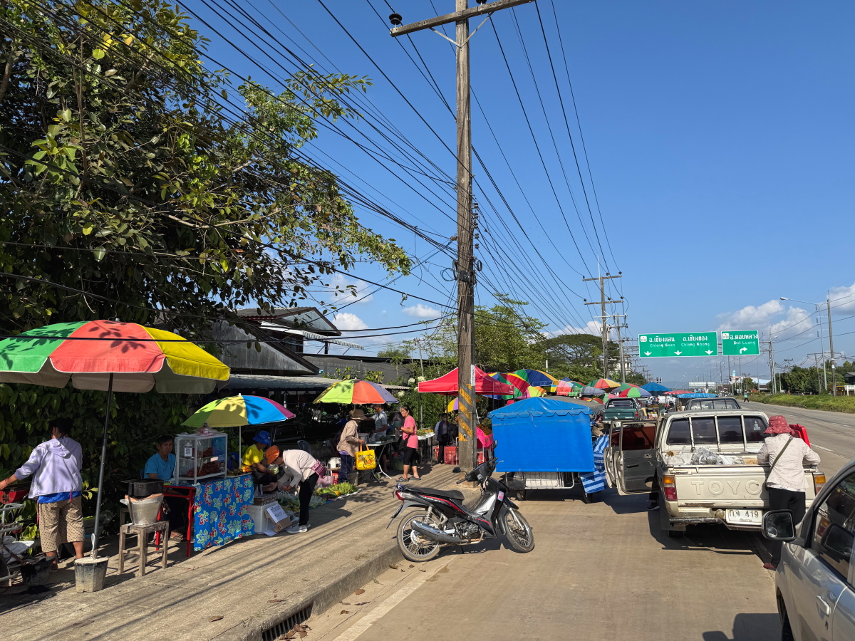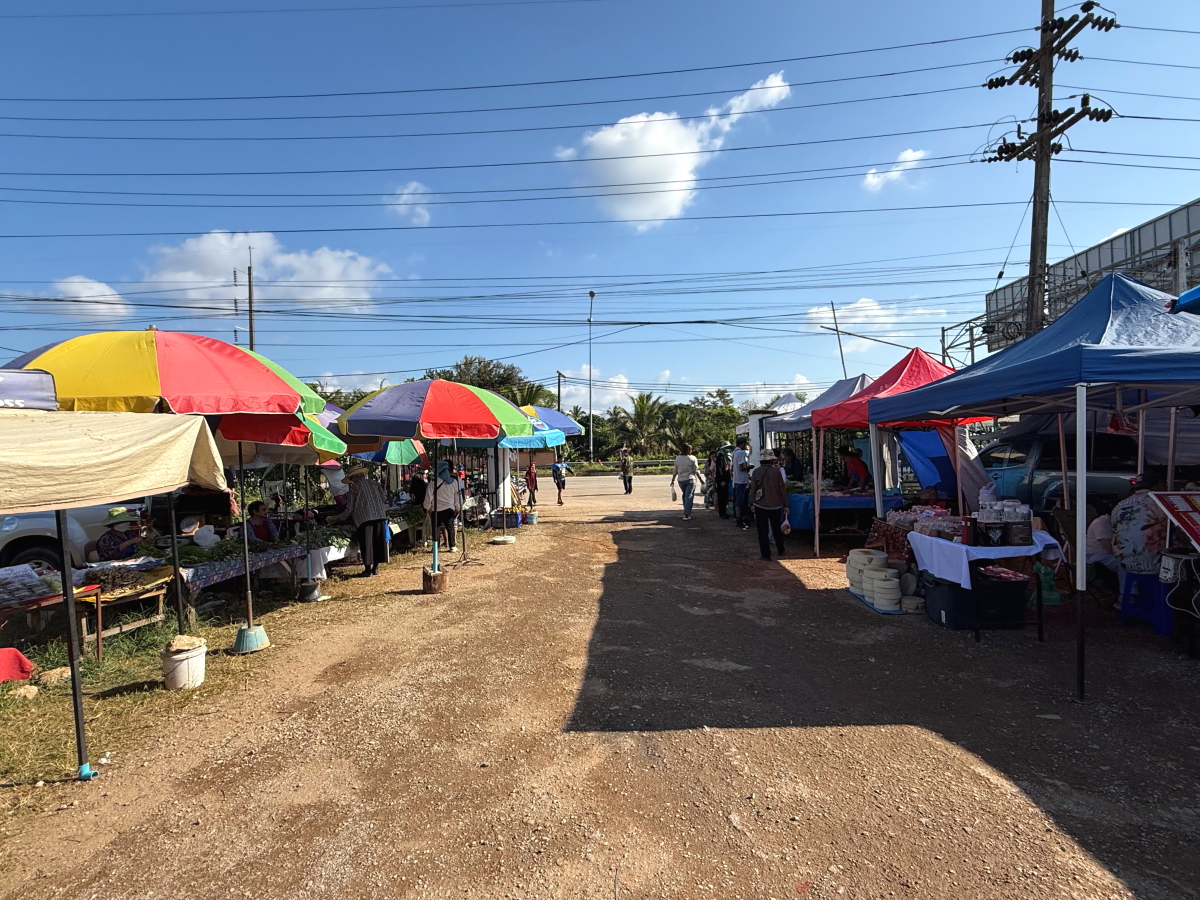 13,Dec,2025 土曜開催市場、敷地からはみ出した屋台が道路側にも並びます