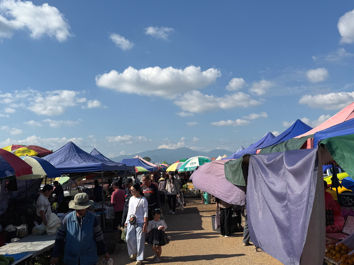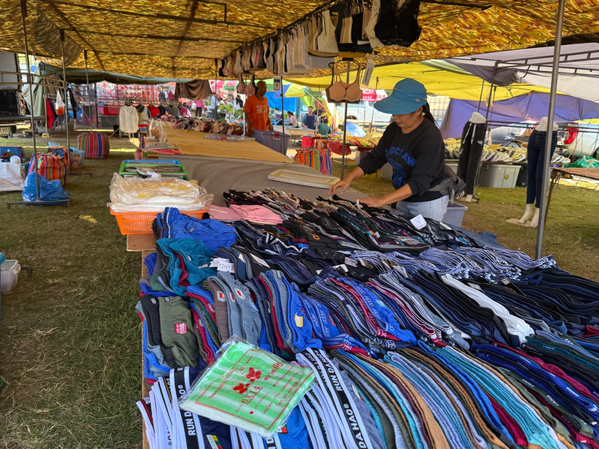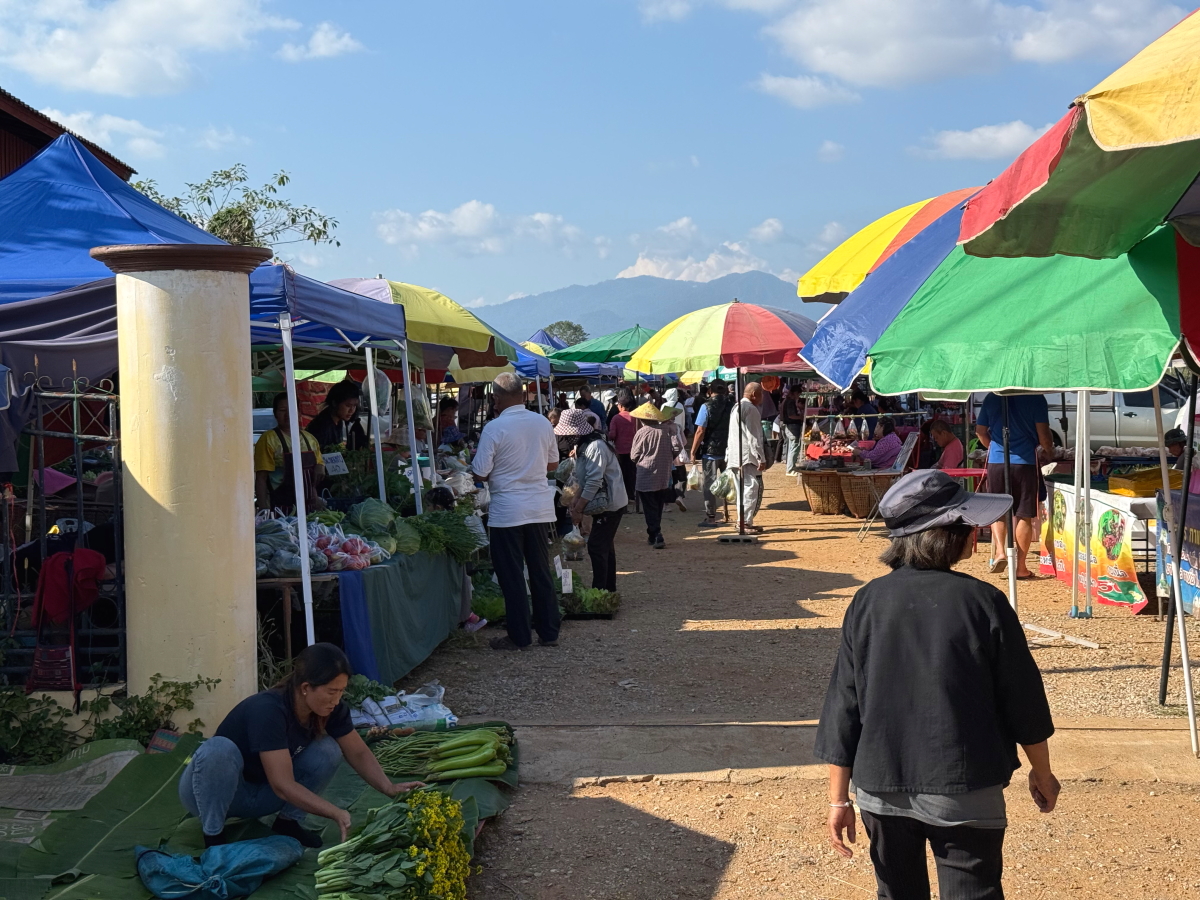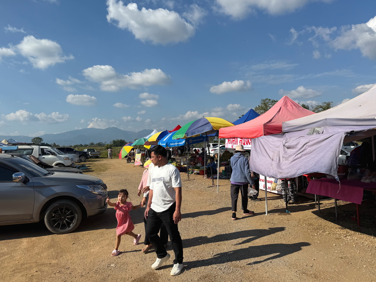 13,Dec,2025 土曜開催市場、敷地からはみ出した屋台が道路側にも並びます