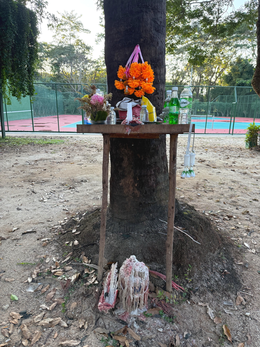 テニスコート前の仏壇は工事が終わっても祀られてました