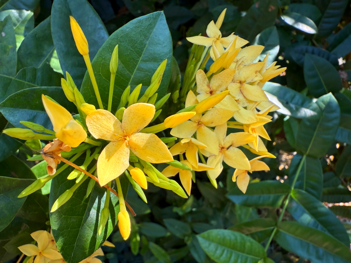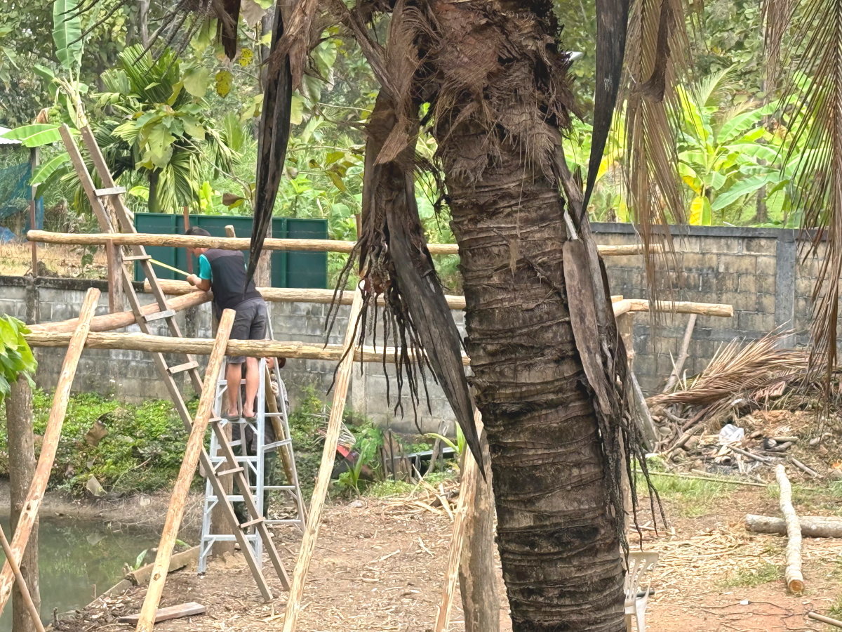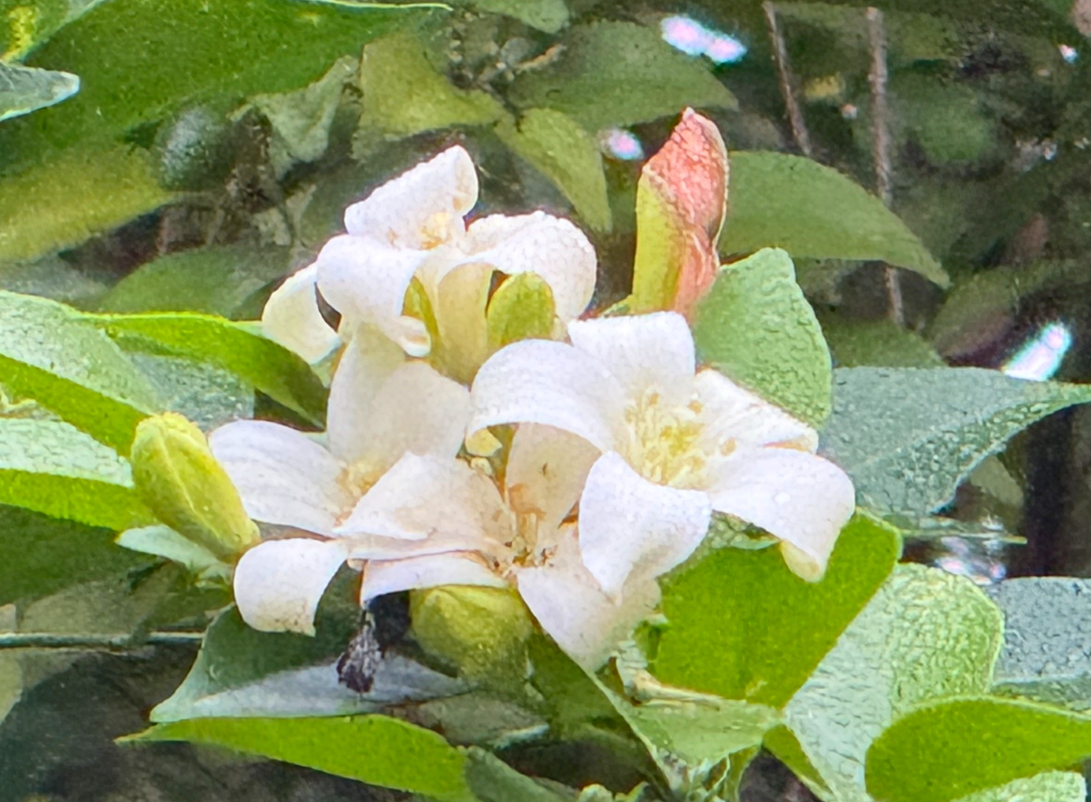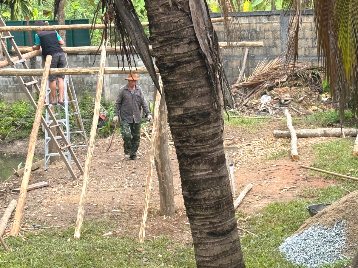 霧の朝、庭のお花たちから、小屋作りと土曜市場とメーチャンの夕暮れまででした