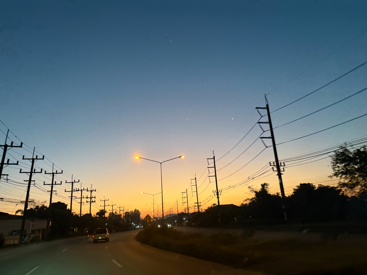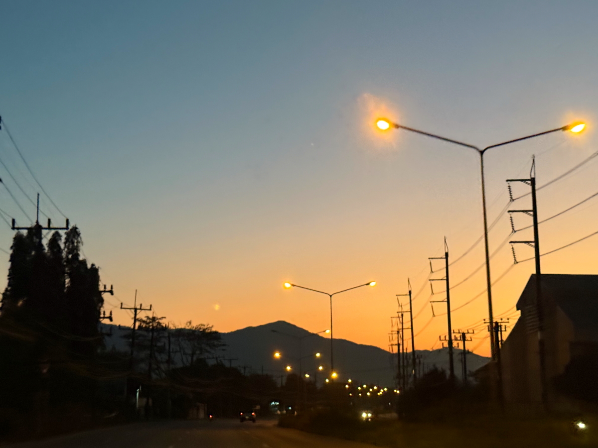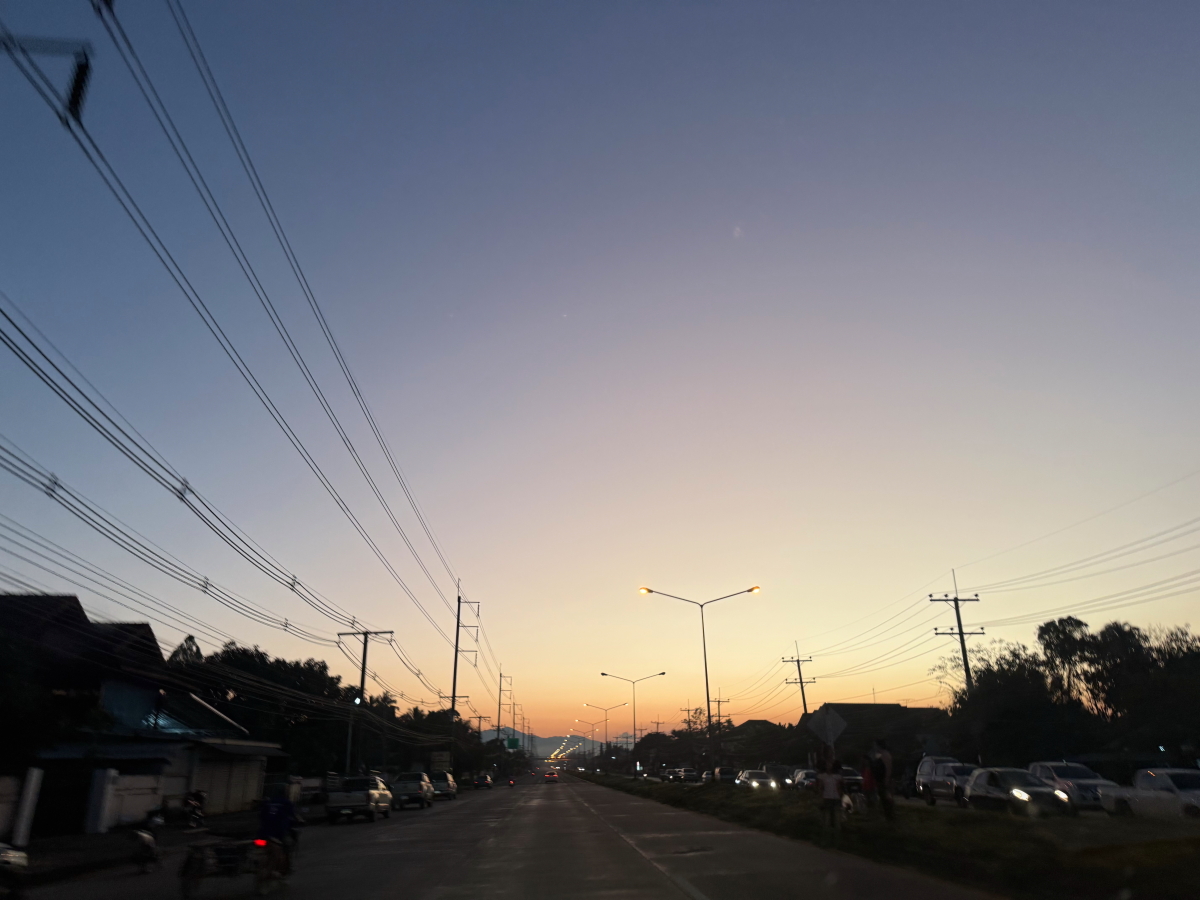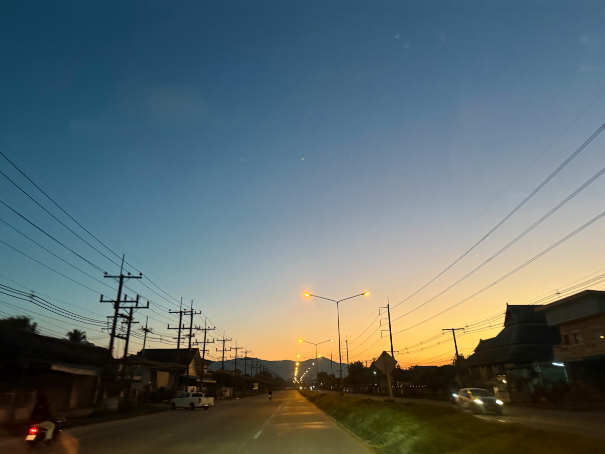 夕暮れの方向に走って、メーチャンの街に向かいます