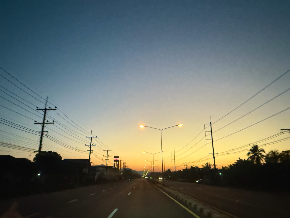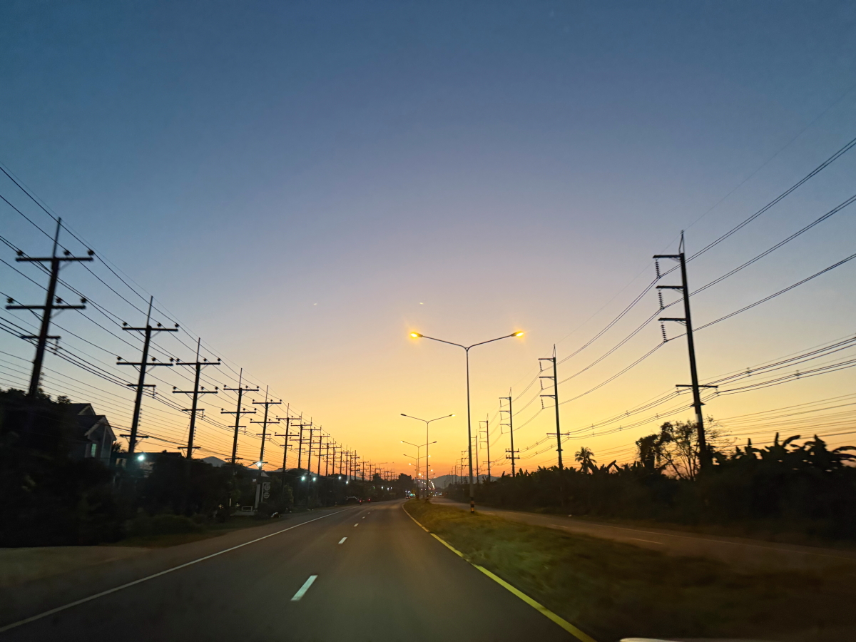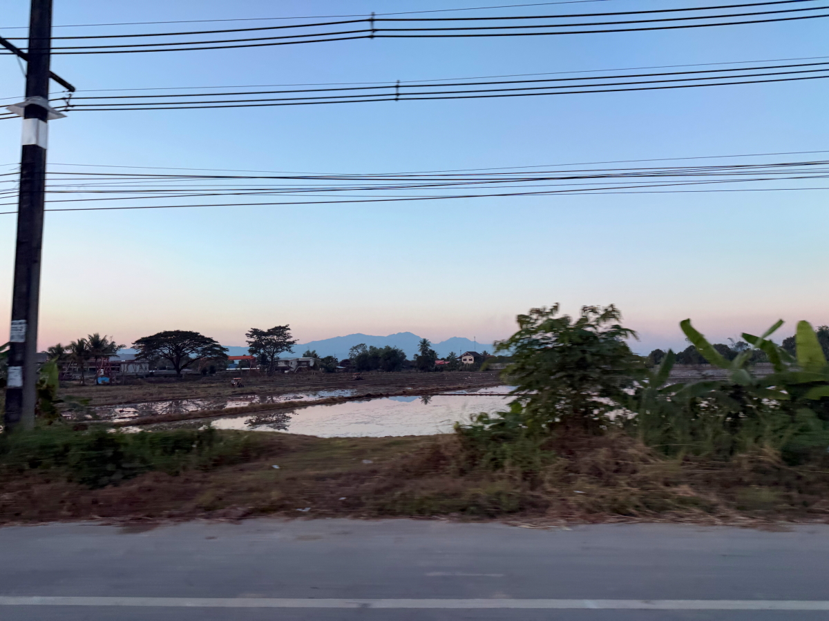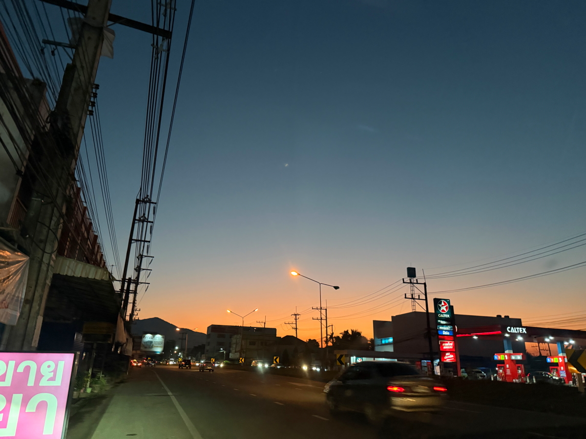 夕暮れの方向に走って、メーチャンの街に向かいます