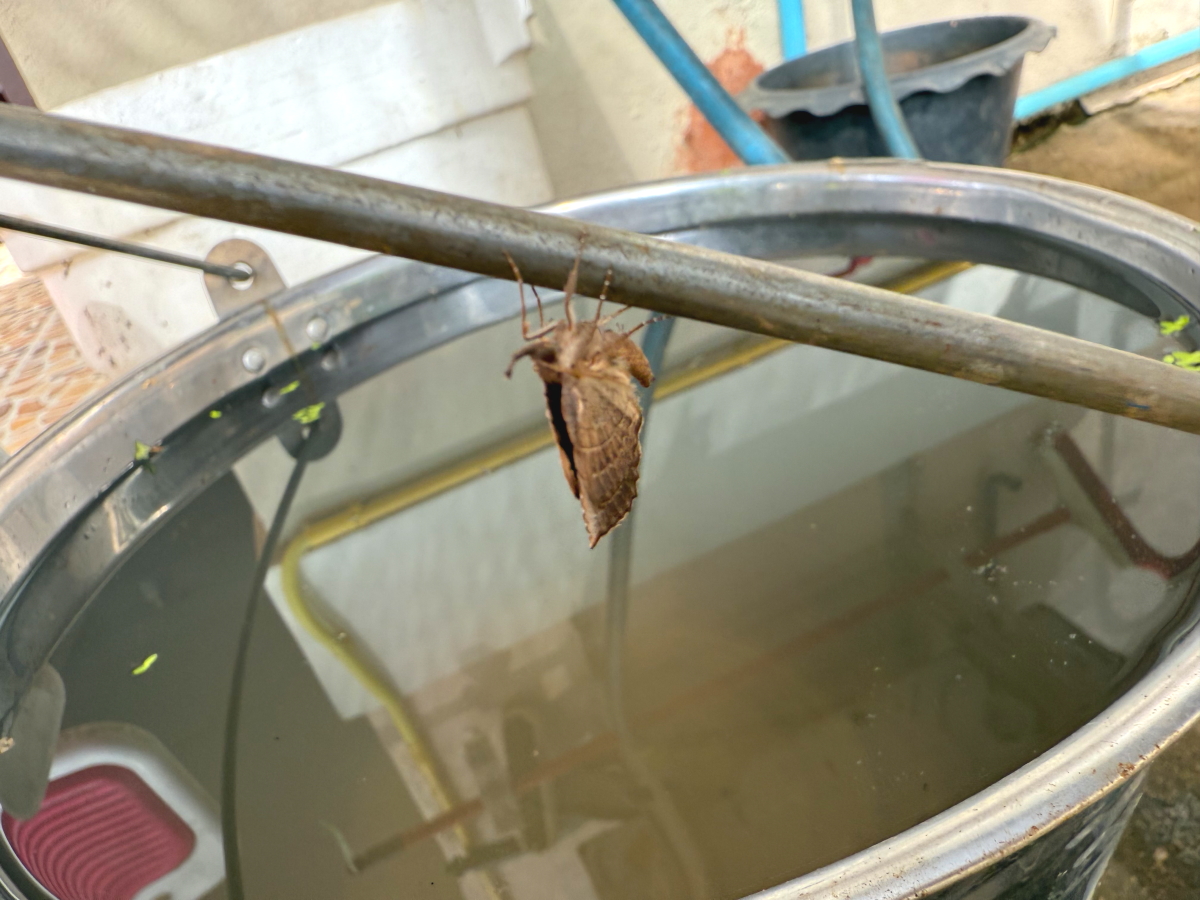 バケツの取手に留めてやると、羽閉じの蝶スタイルです