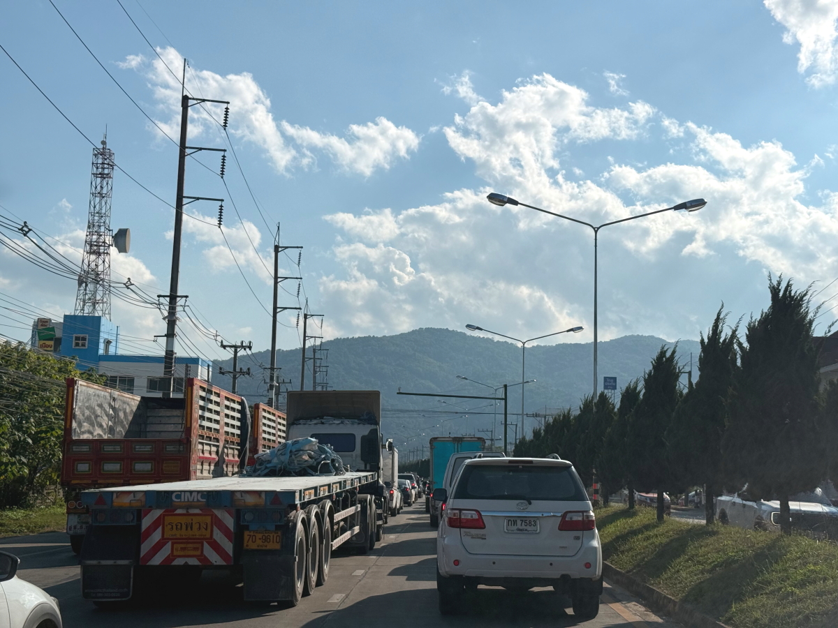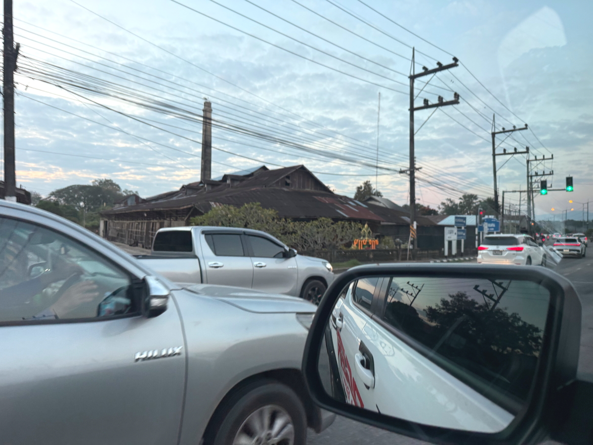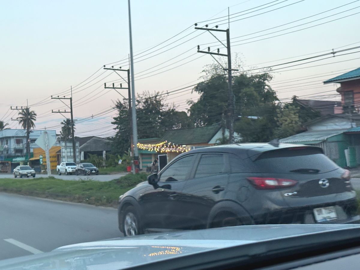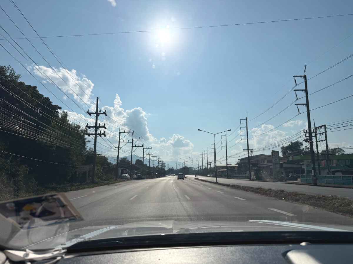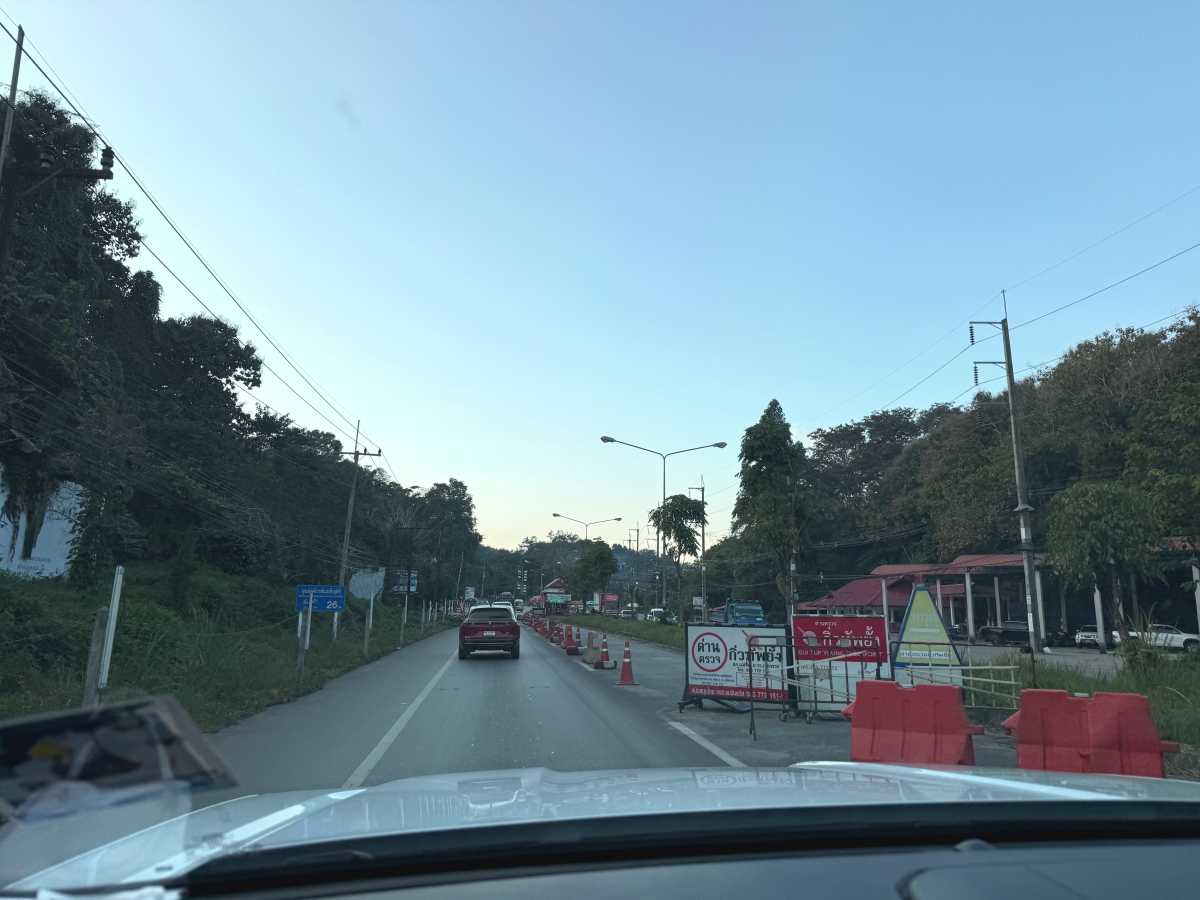 王立大学の国道沿いの入り口から、プールまでの学内道路