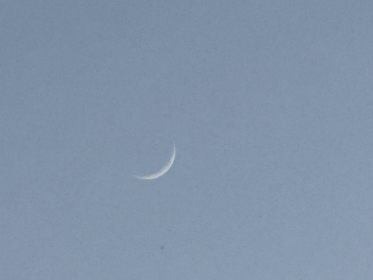 よく見ると、お空に細い月(画面の中心付近、かなり薄い色)