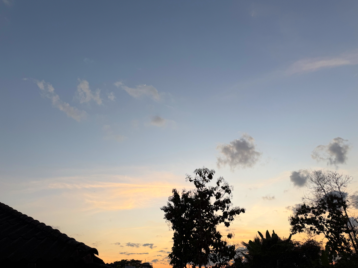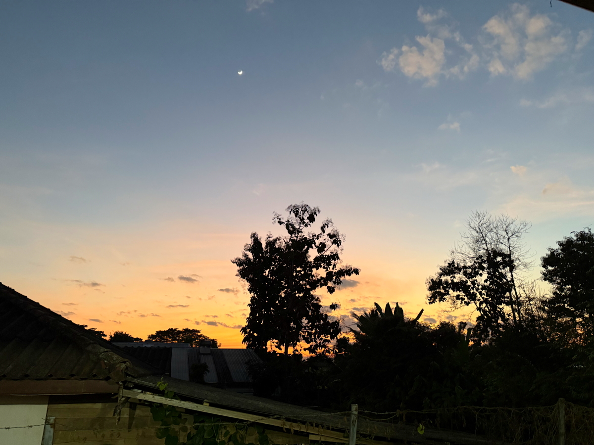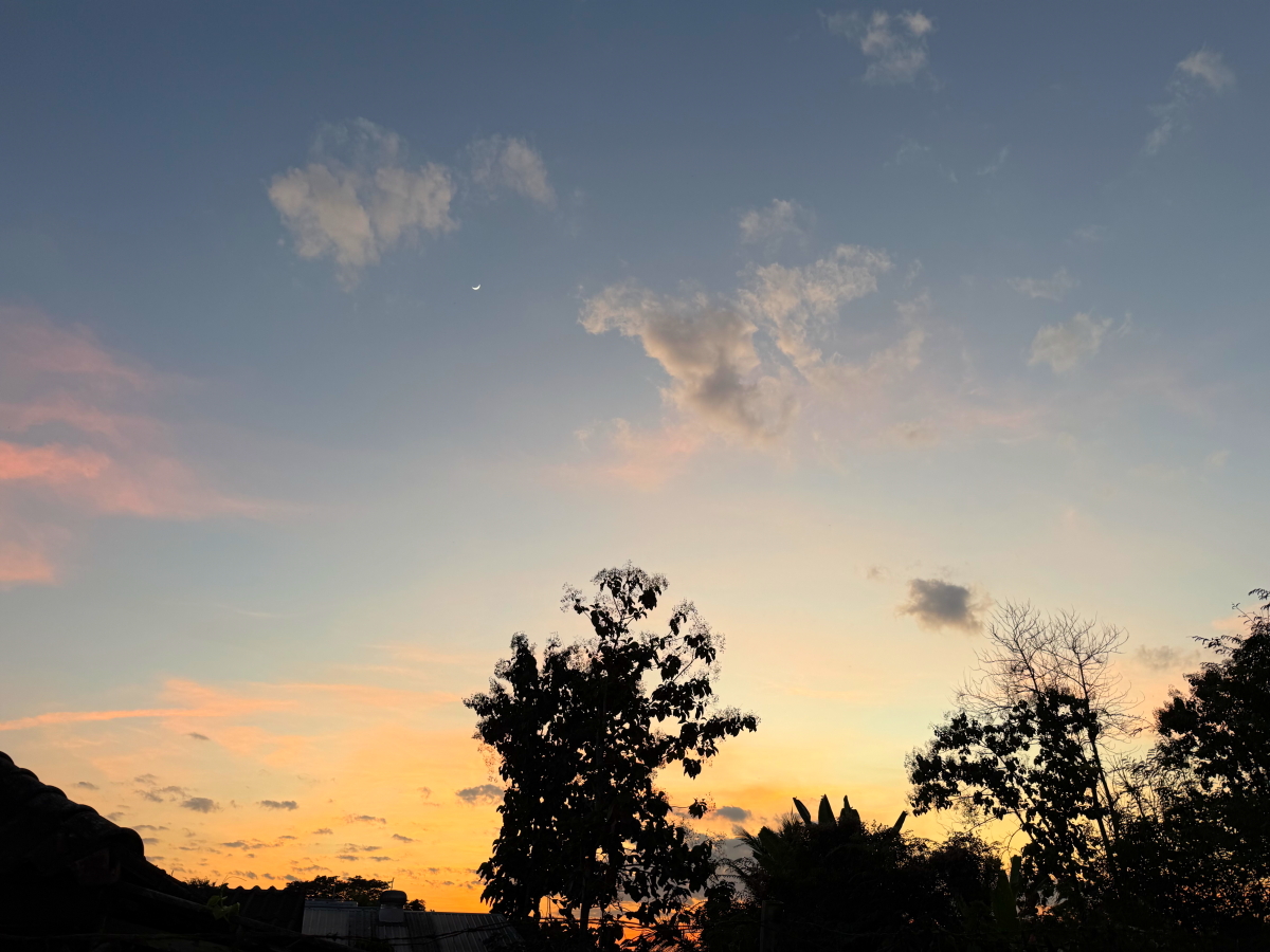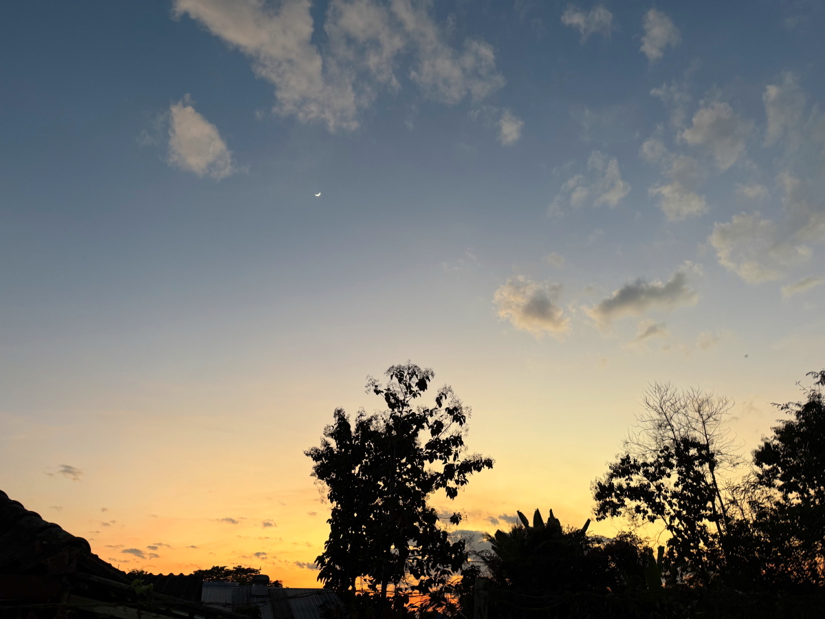細いお月様が浮かびました(写真中央、小さくて見えにくいかも)