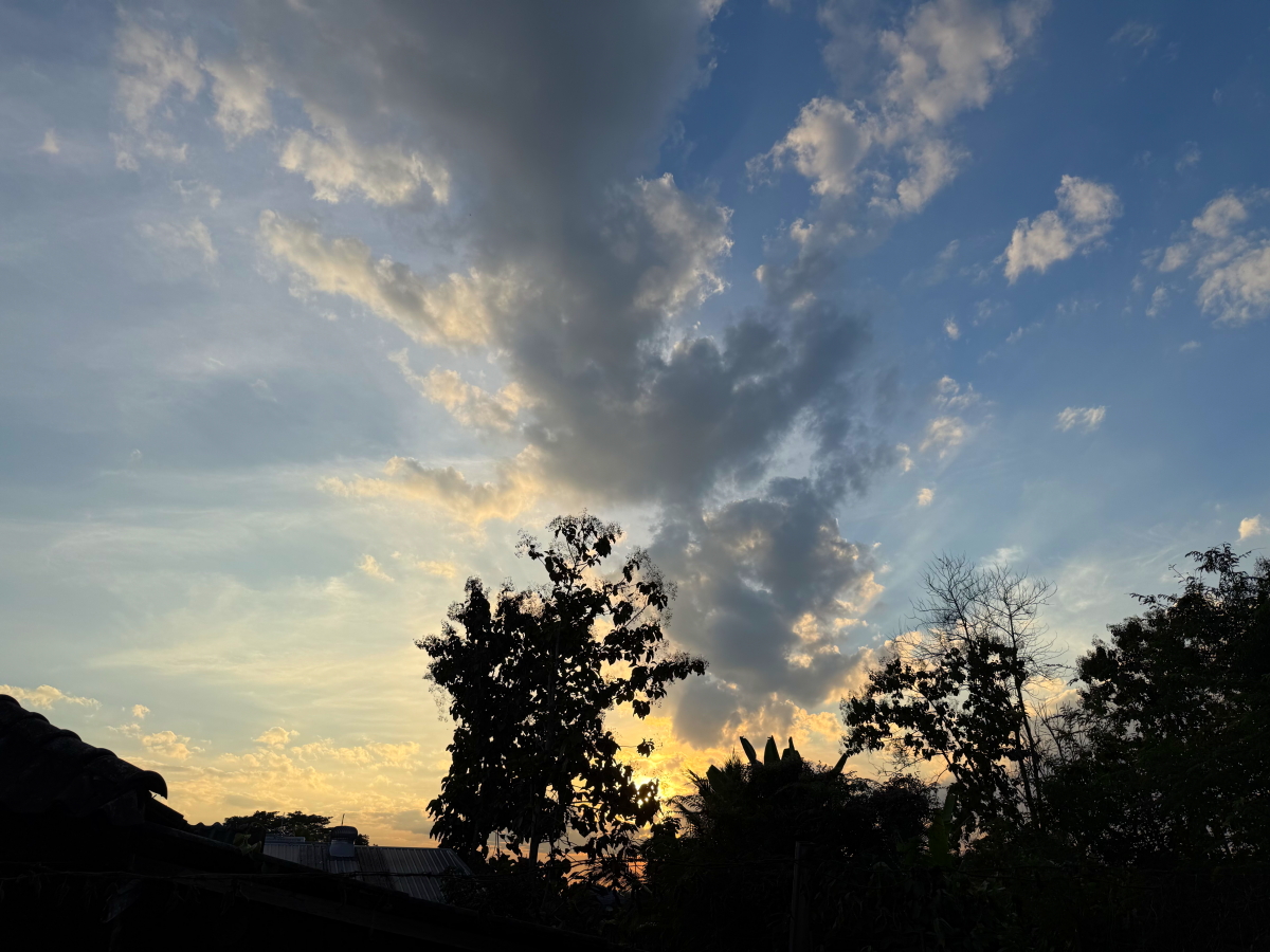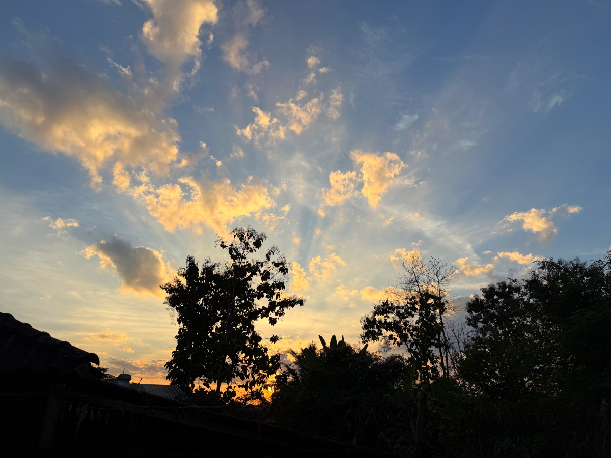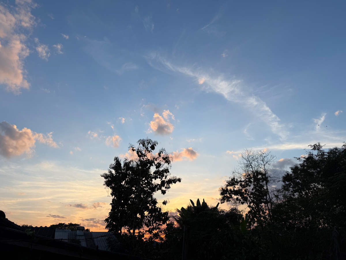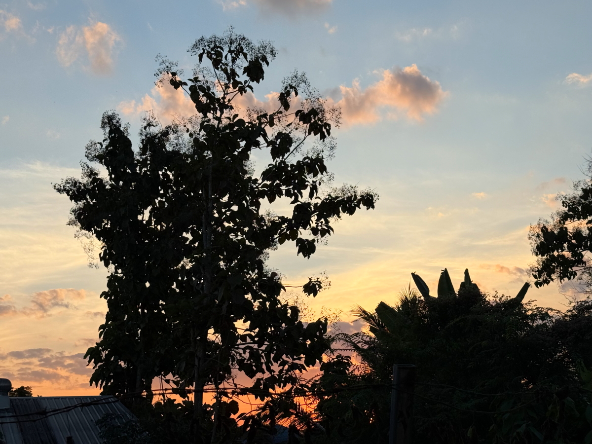 細いお月様が浮かびました(写真中央、小さくて見えにくいかも)