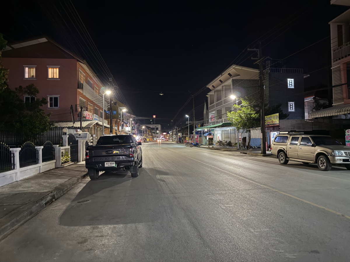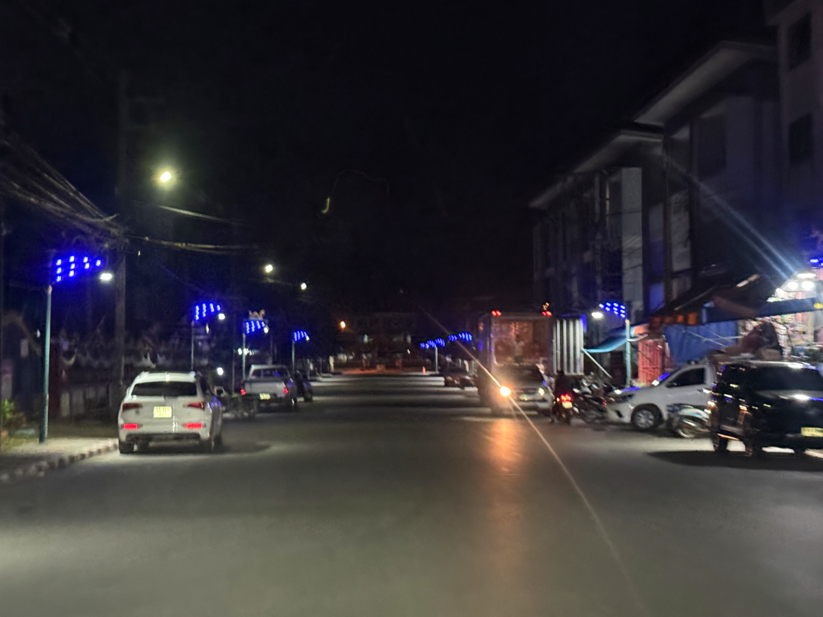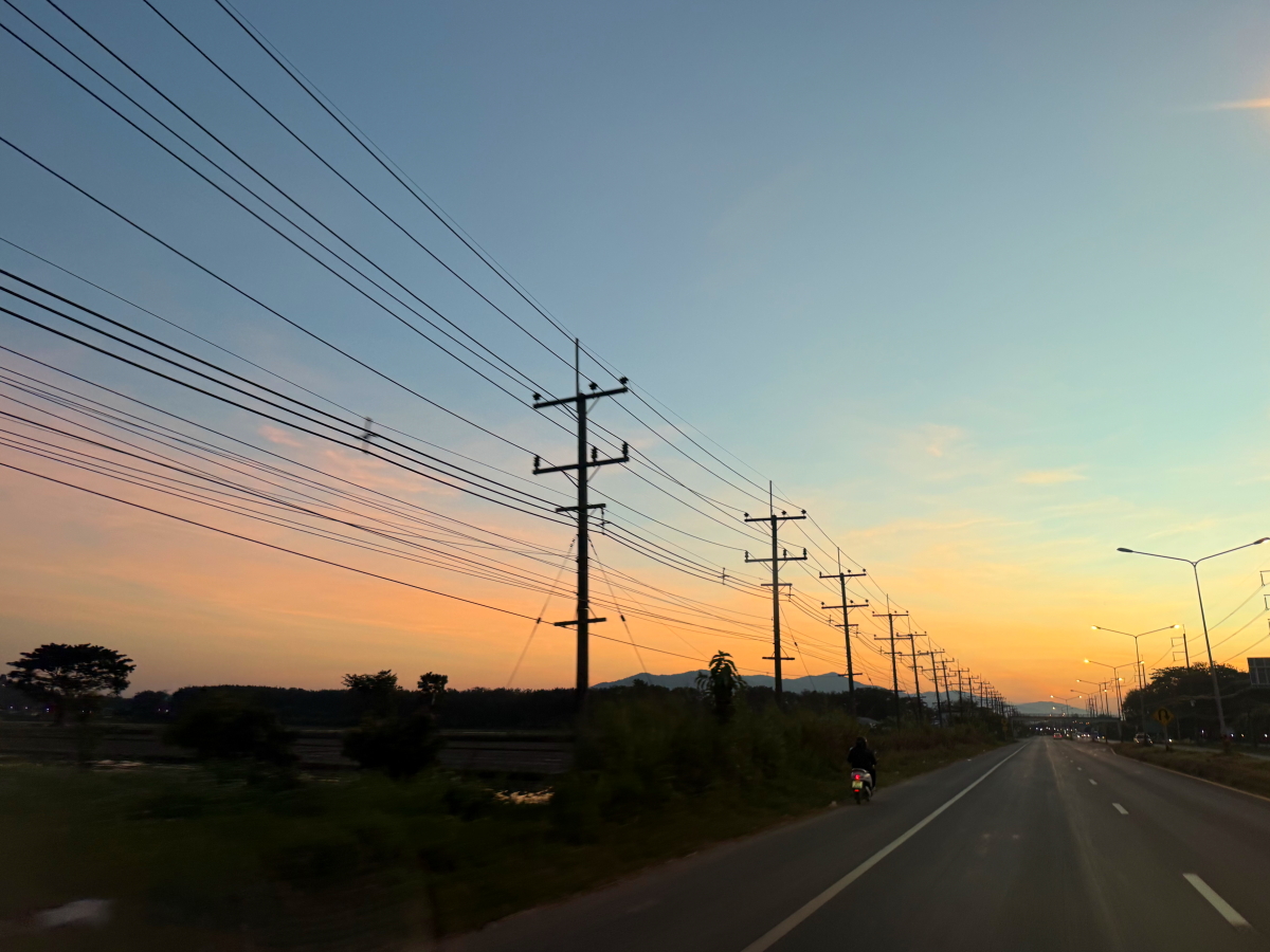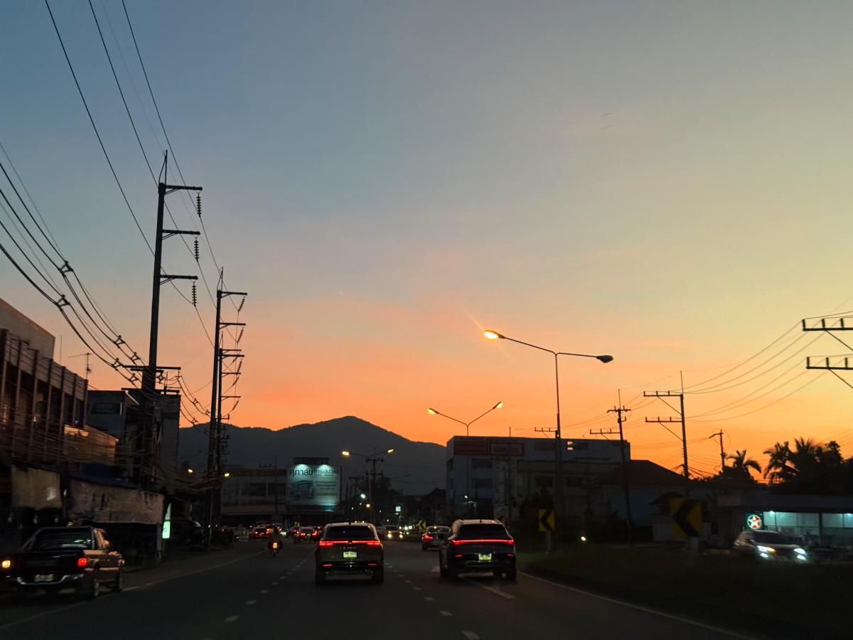 西の空に細い月が浮かんでます(画面中央、よく見ないと見えないかも)