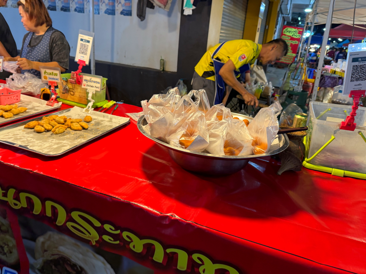 丸い揚げ物のお菓子はいつも購入、20バーツ