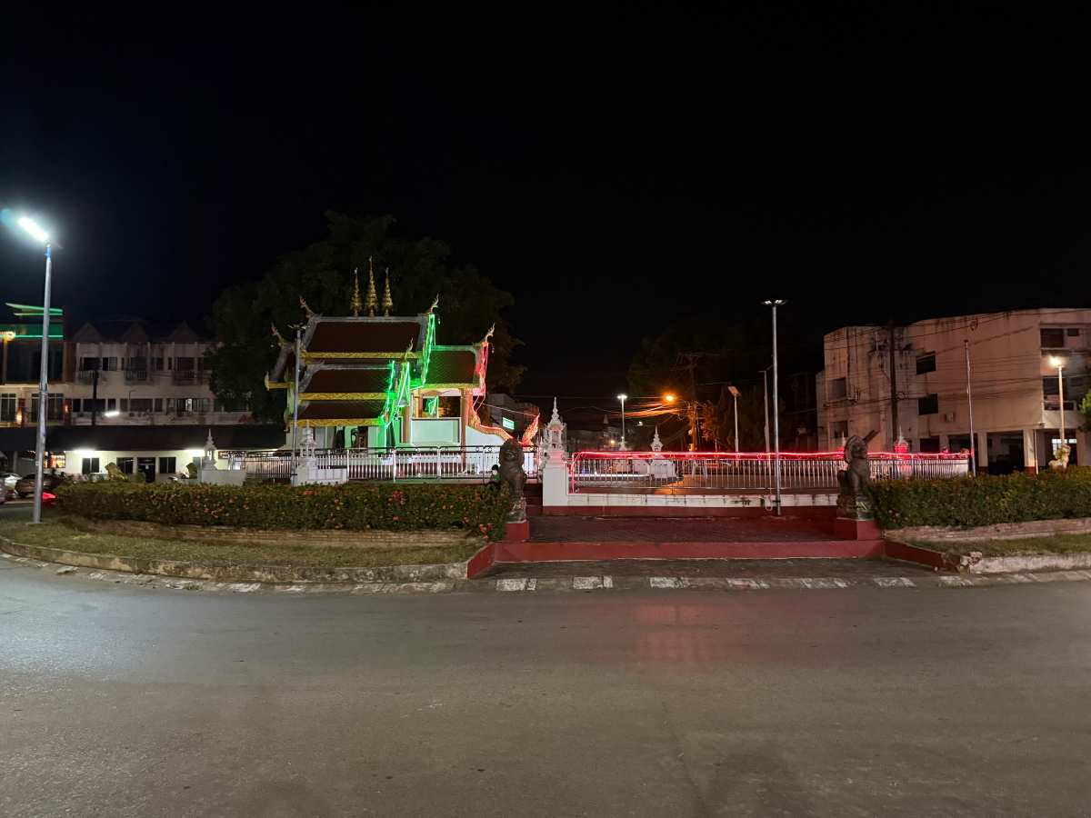 暗くなると、警察署前のローターリー仏壇にイルミネーションが光りました