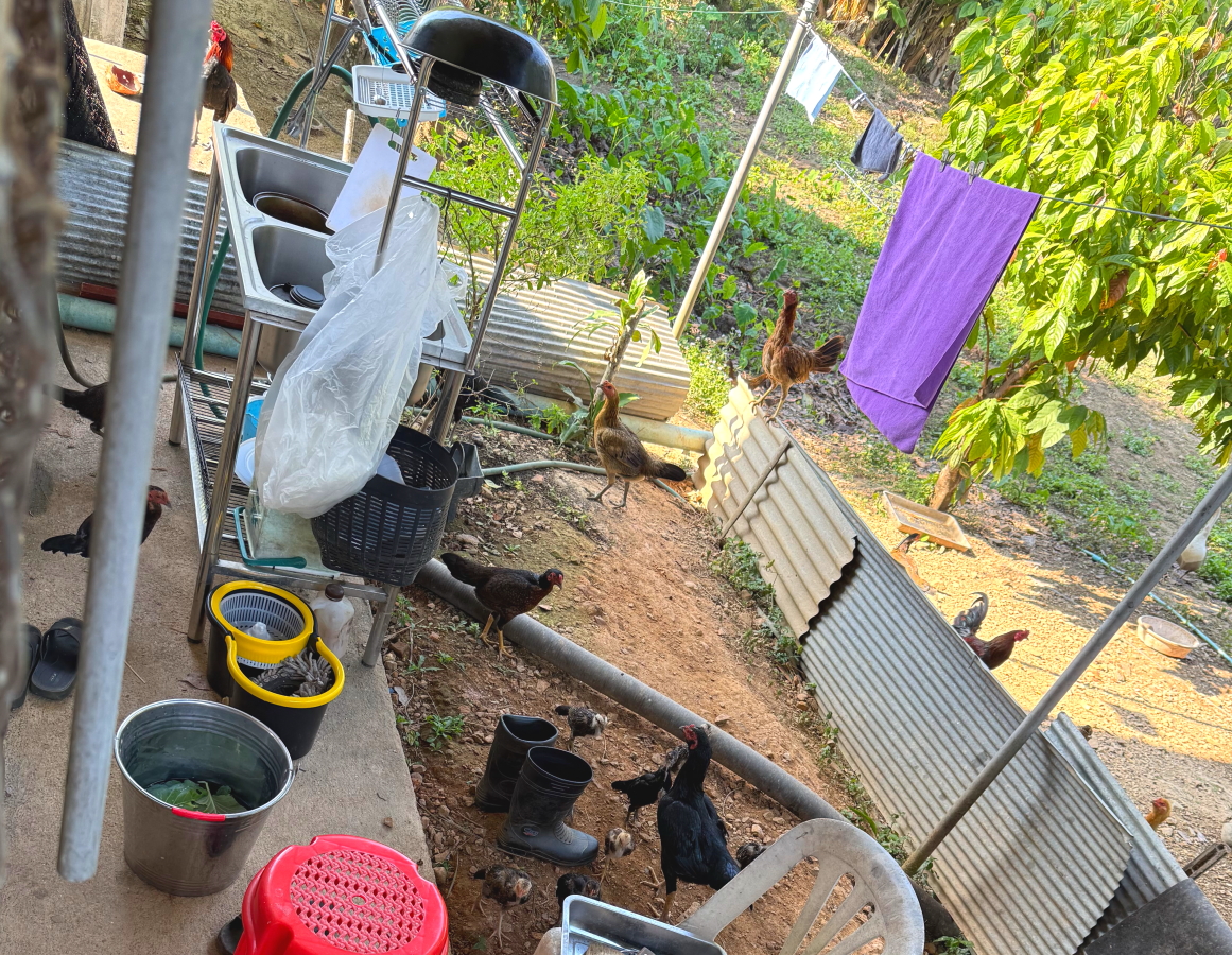 03,Jan,2026 庭に顔を出すと、鶏達が餌ねだりで集まります