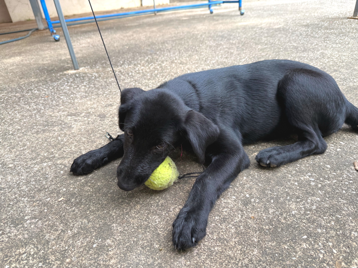 生後3ヶ月のチビはテニスボールと戯れ合ってます
