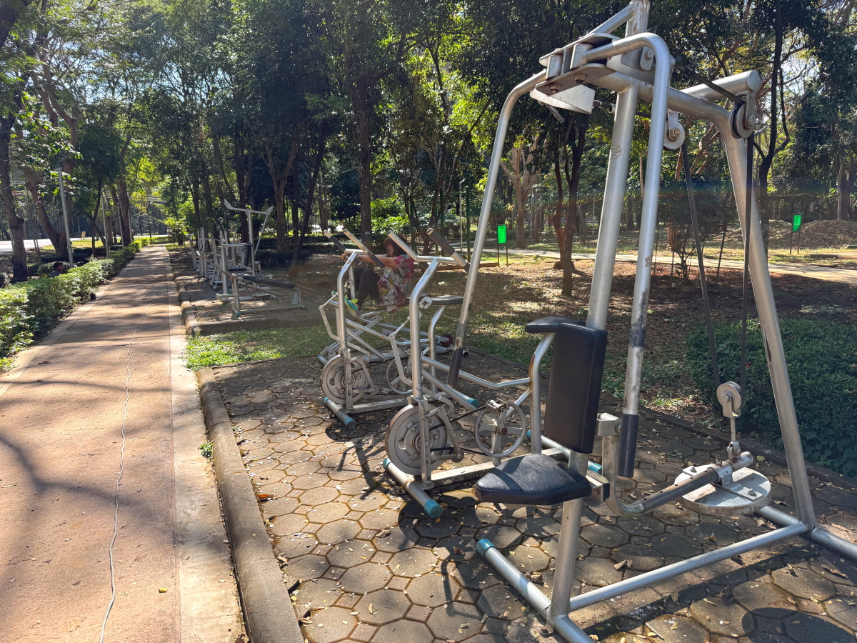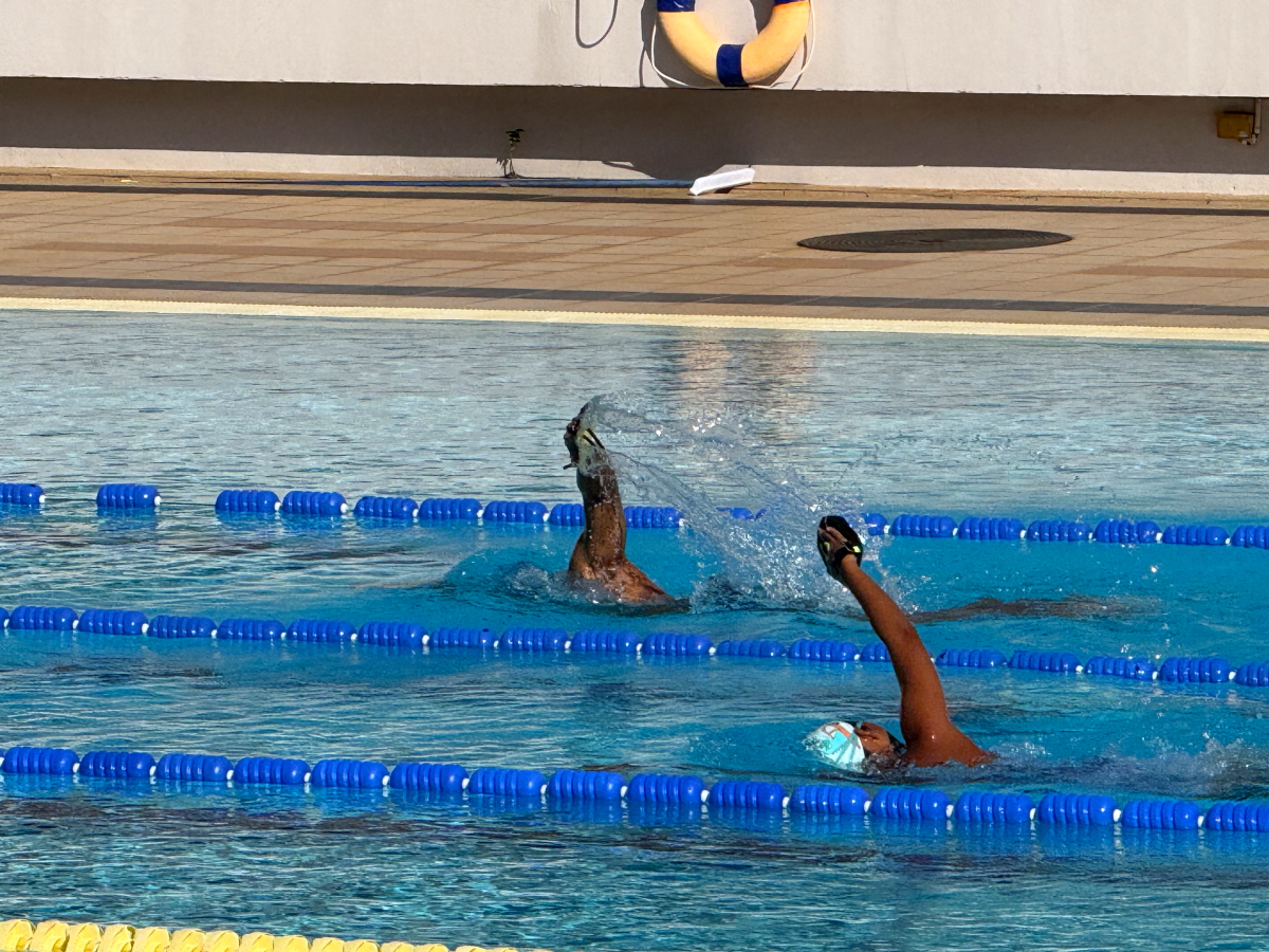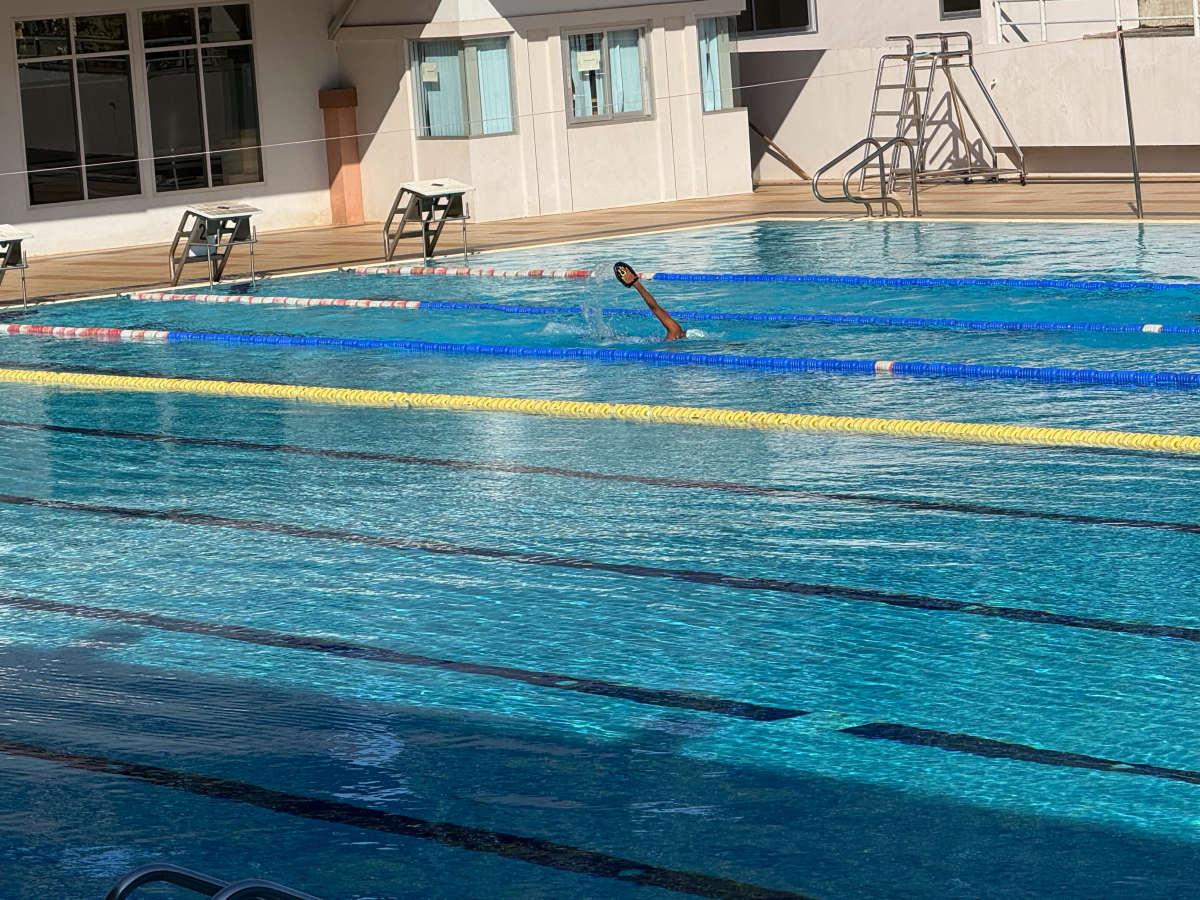 プールは専用使用中で入れず、横のトレーニングコーナーで軽く運動