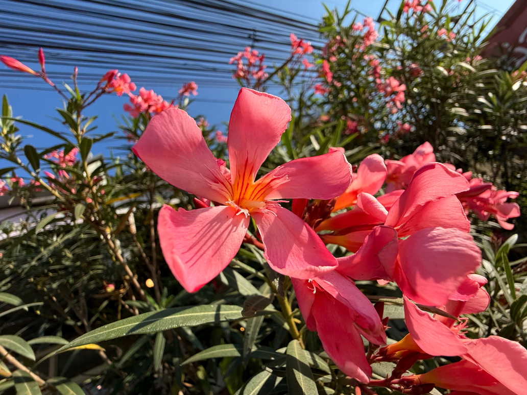 庭のヒナとお花達からいつものプール、街の食堂と夕暮れ定点観測まででした