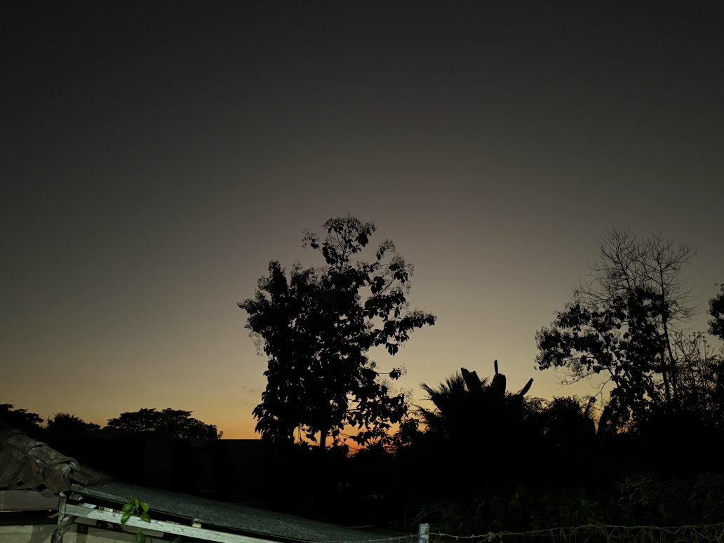 夕暮れ定点観測、薄雲が広がっていて発色はイマイチ