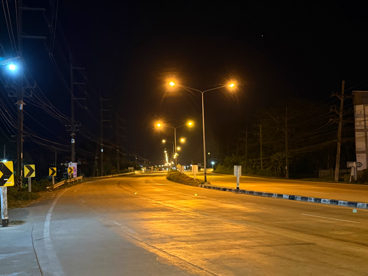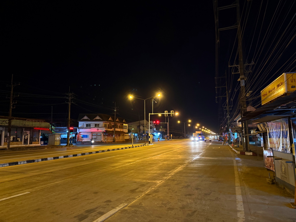 日没後にコンビニで買い物、国道のオレンジ街灯が鮮やか