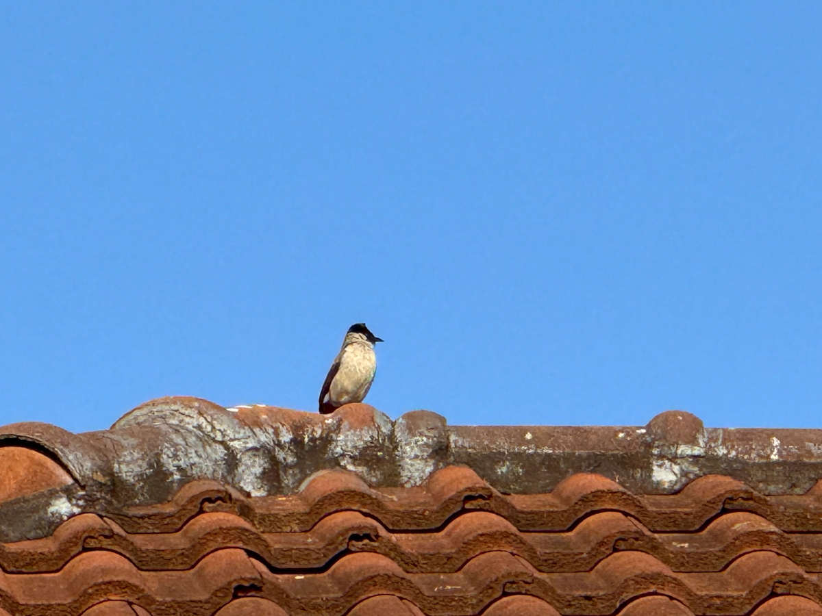 屋根の上の鳥さんに見つめられてます