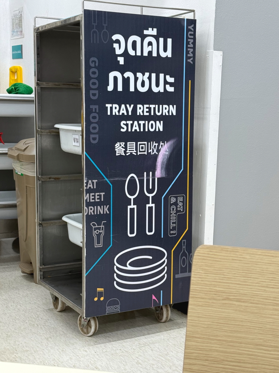 お皿返却コーナーの言語はタイ語、英語、中国語・・・さすがに日本語は無し