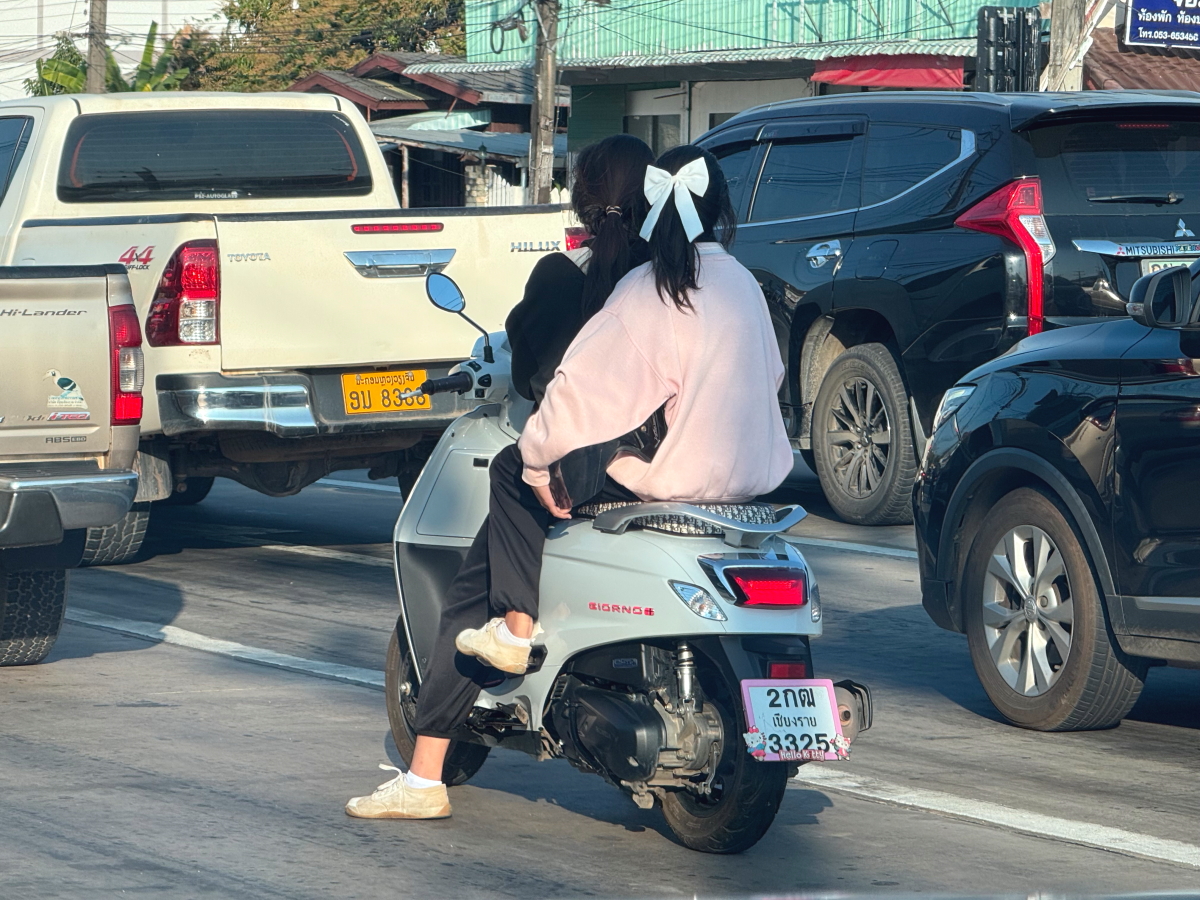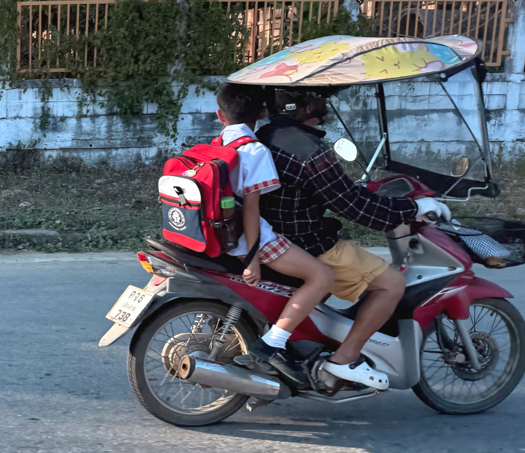タイの子供はお父さんのバイク通学