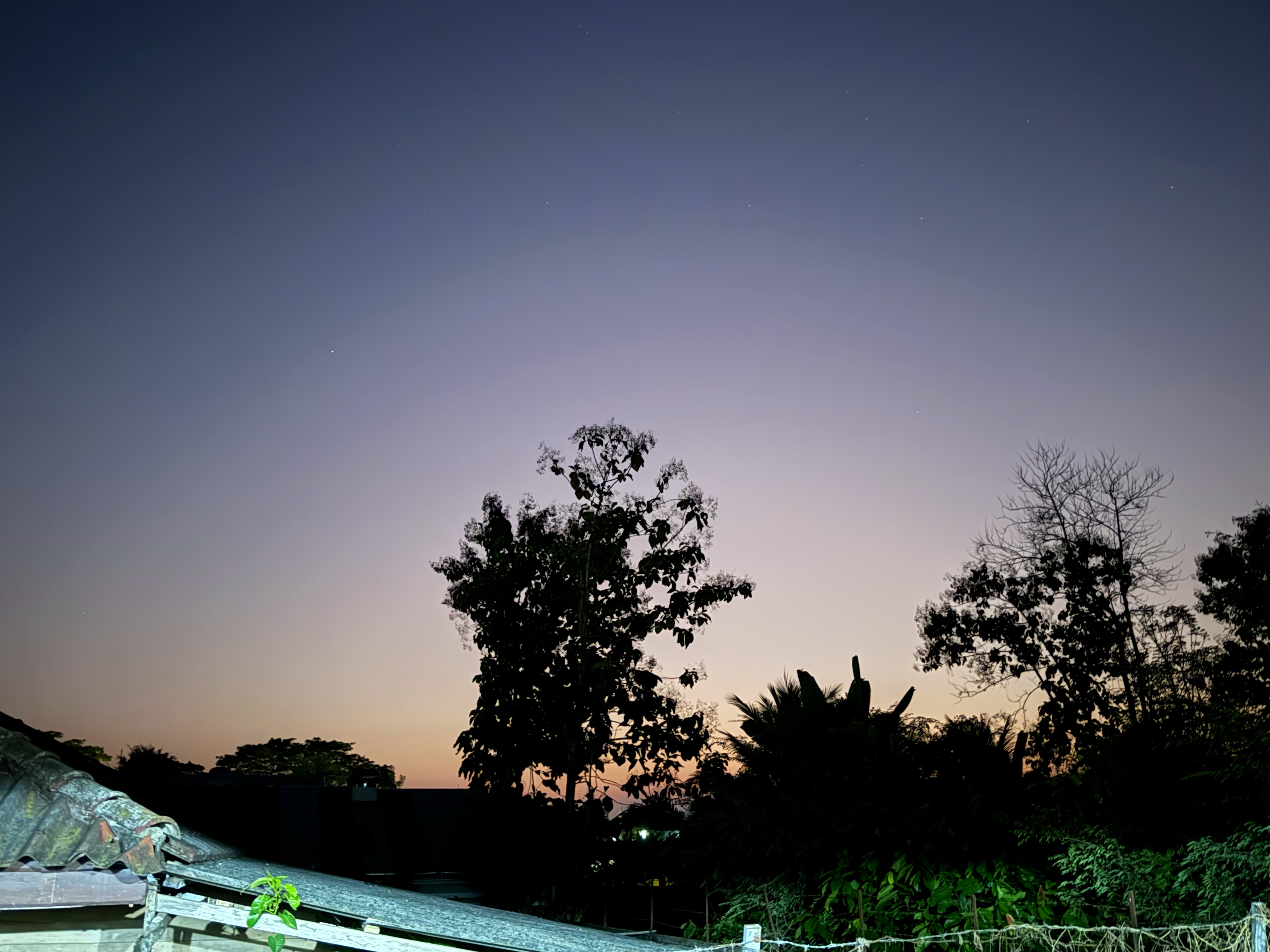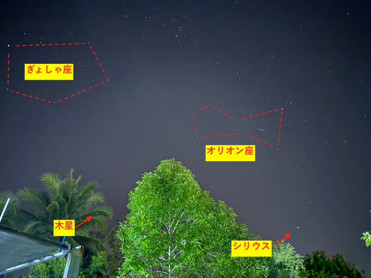 最後は満天の星空、左の椰子の葉の隙間に見える一際明るい星は木星