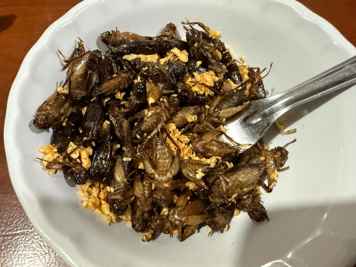 夕ご飯には、タイのタンパク源のイナゴ