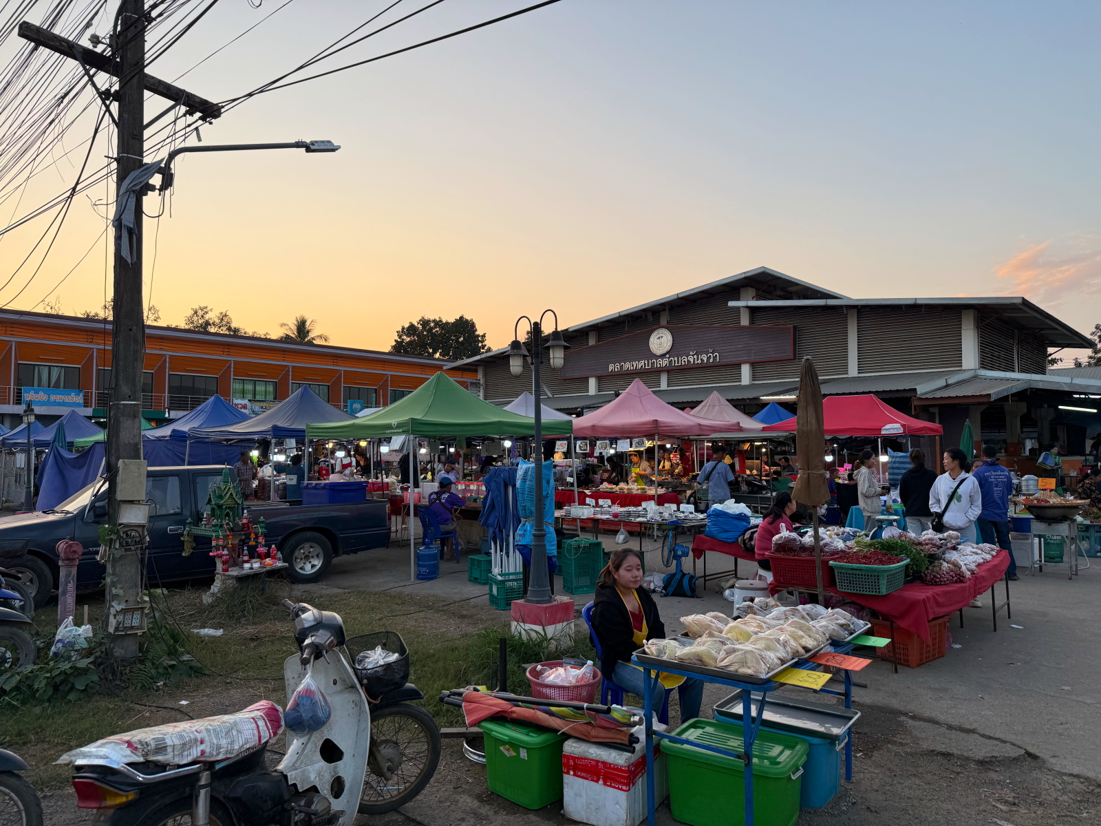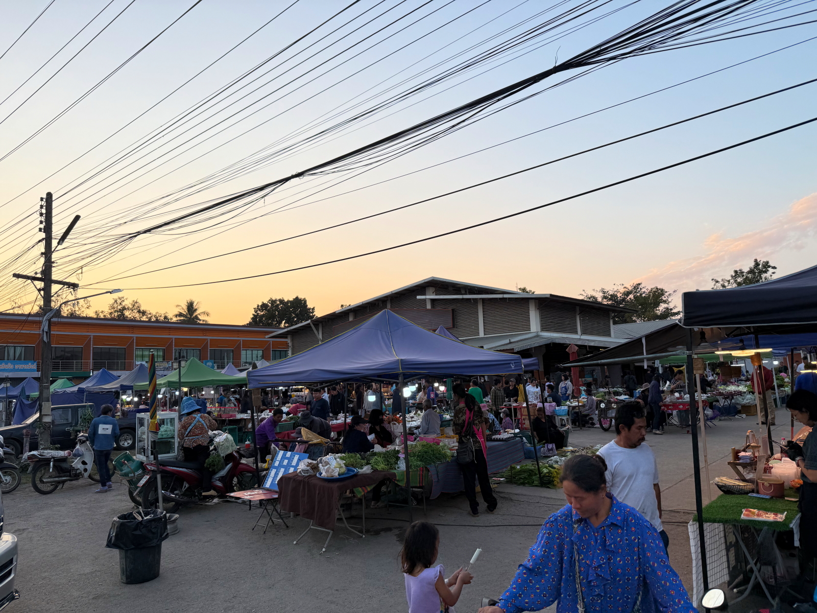 定点夕暮れ観測の日没映像撮ってから、市場にお出かけ