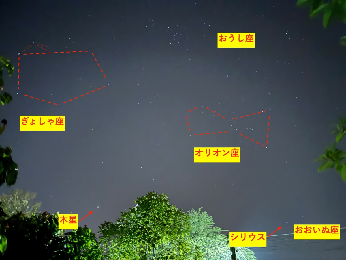 おうし座とおおいぬ座はトレースが難しいので星座名のみ入れました