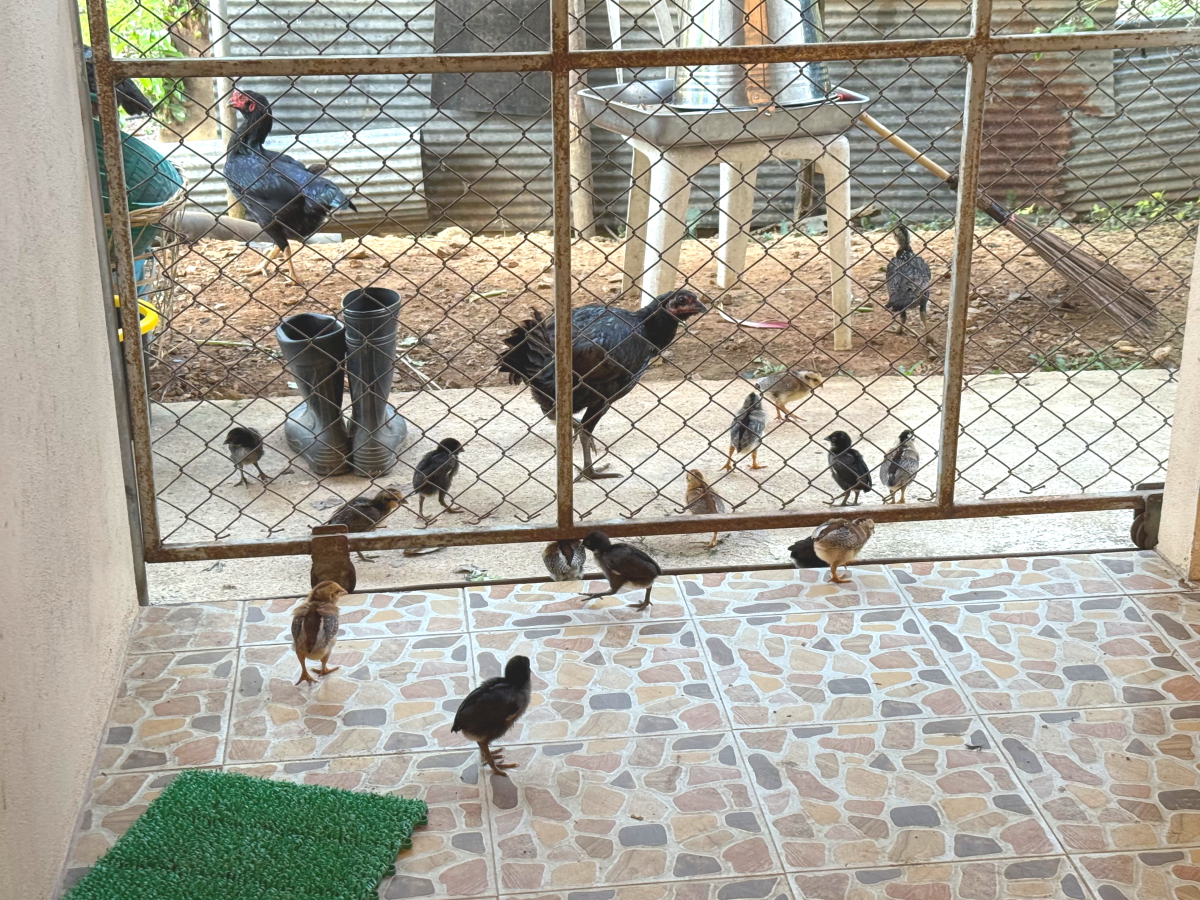 体の小さなヒヨコは隙間を潜って、人のエリアまで侵入です