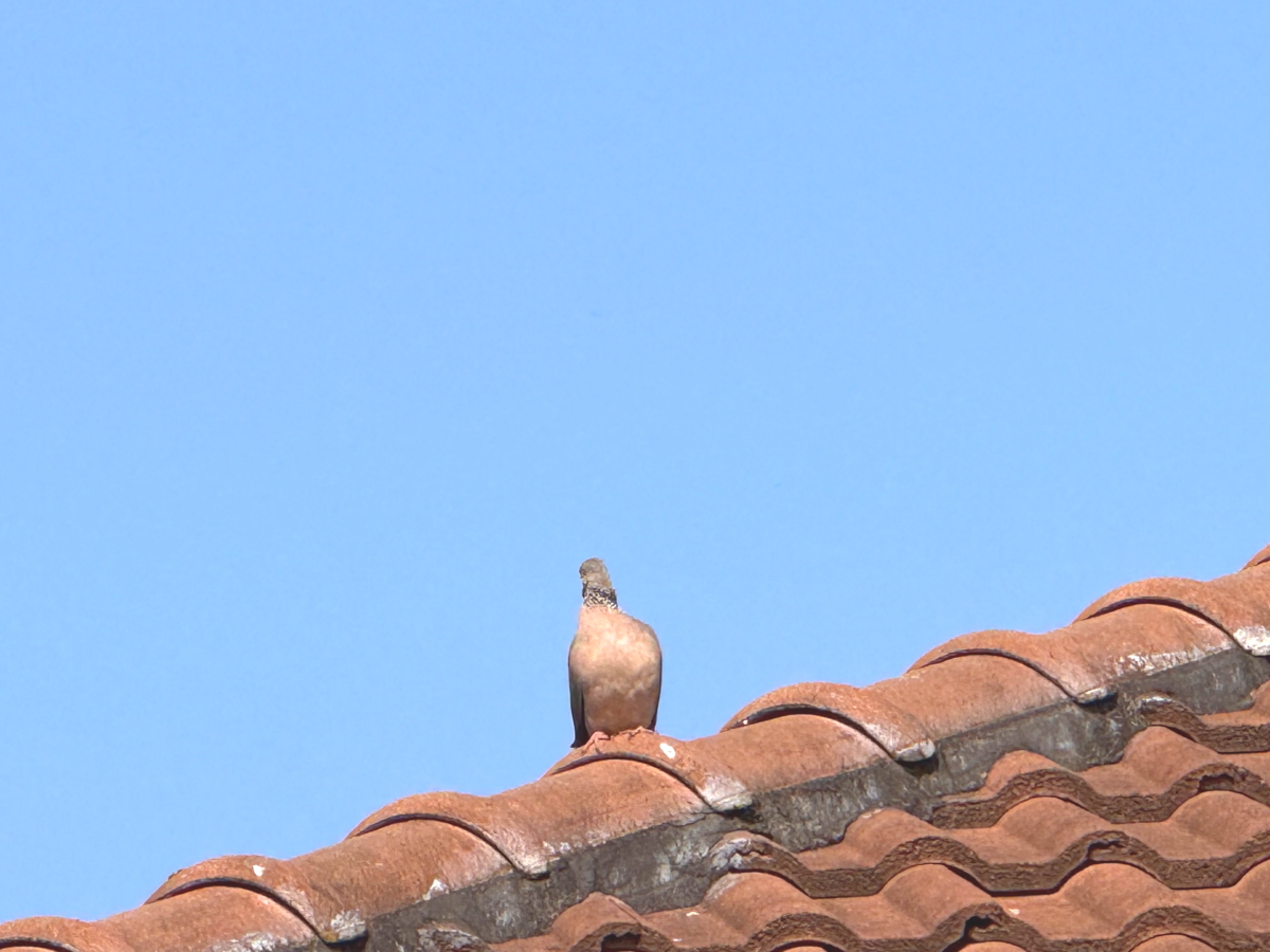 朝の鳥さん、相変わらず屋根上から見つめてました