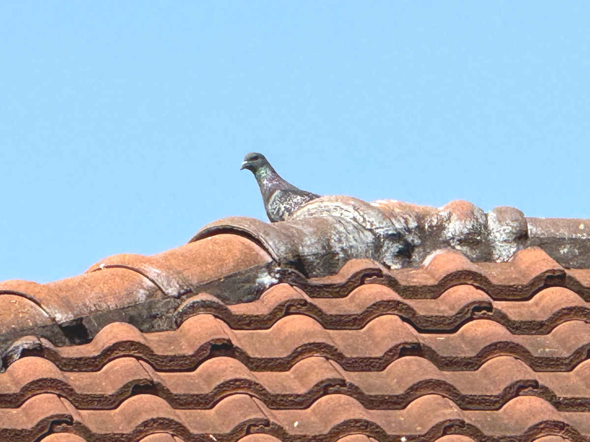 屋根上の鳥も厳しい監視の目
