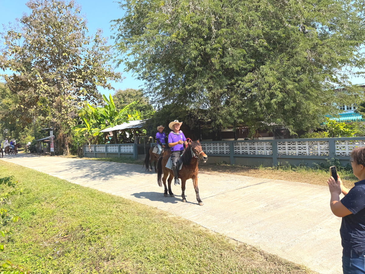 日曜の選挙で1位当選した陣営が挨拶回りをしてます、自前の馬での回遊