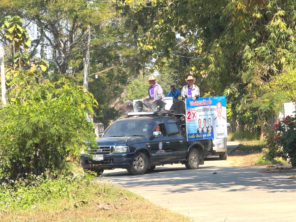 選挙カーも後ろに居ました