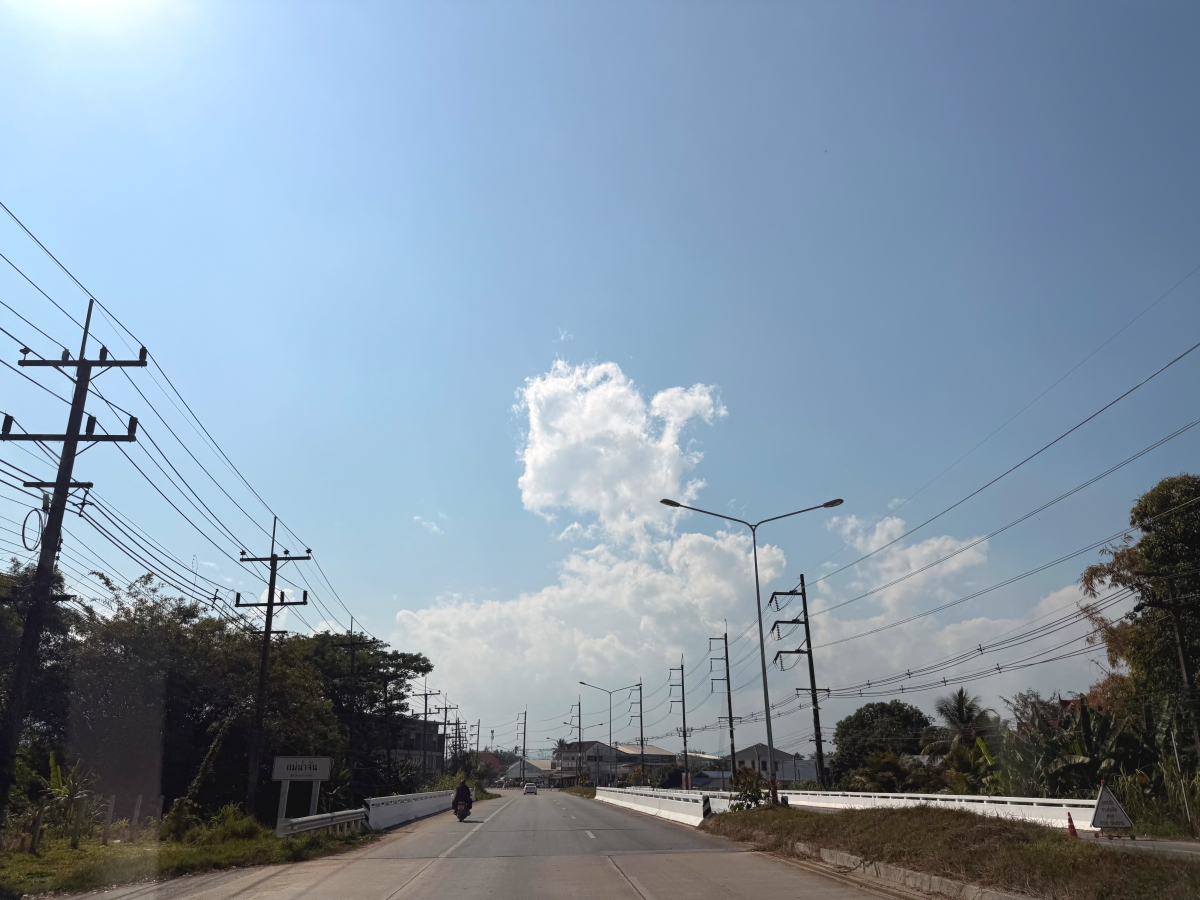 国道を南下すると、青空に可愛らしい雲