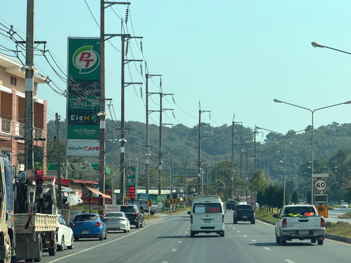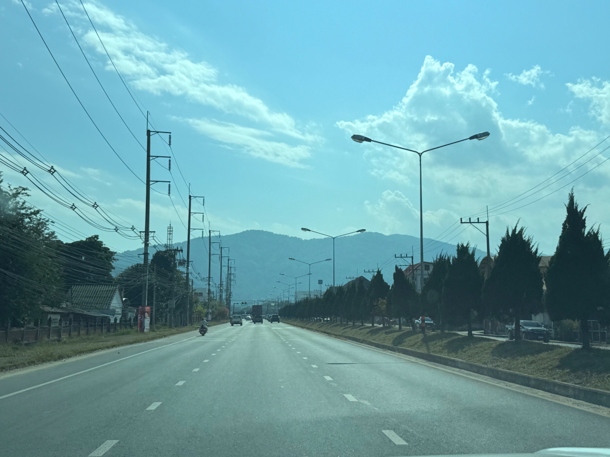 メーチャン市街の道路沿いの林の木々が青々と茂ってます