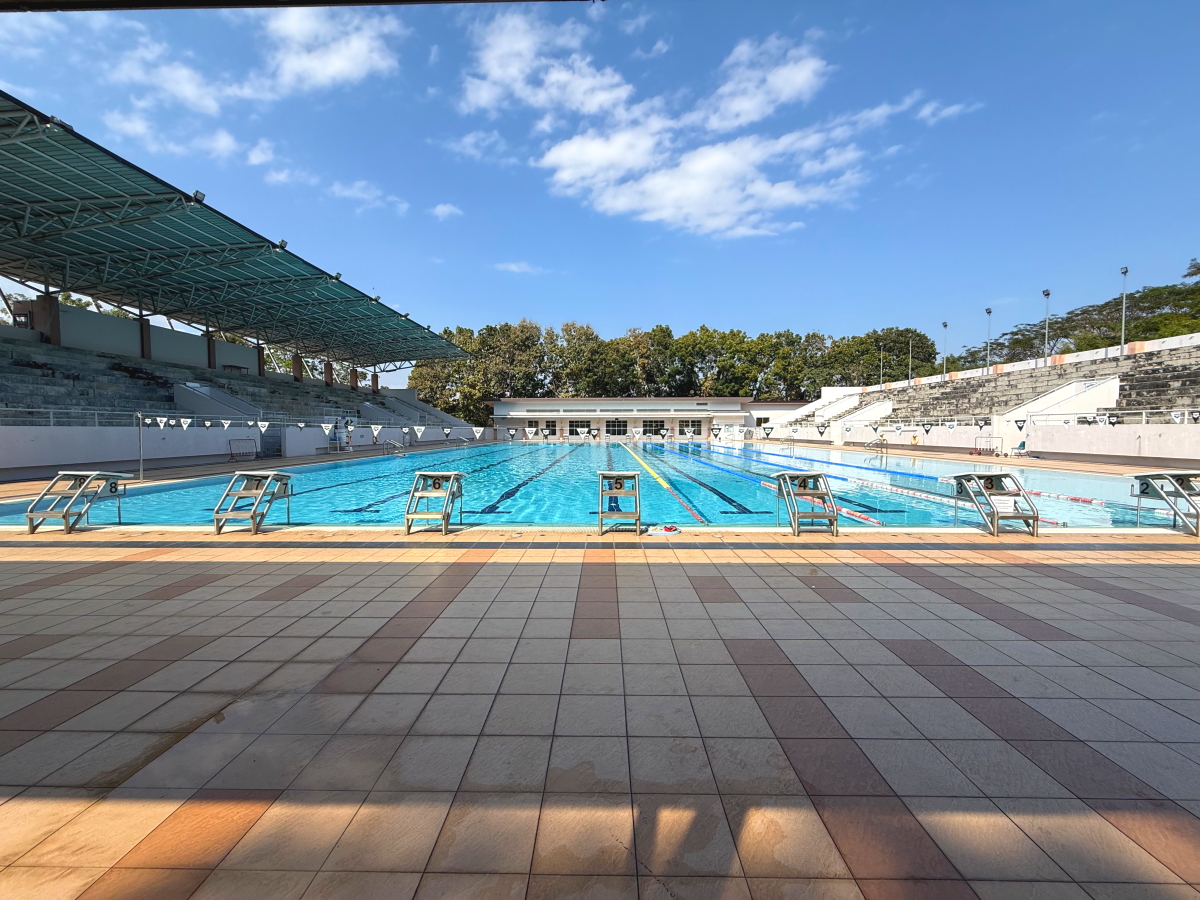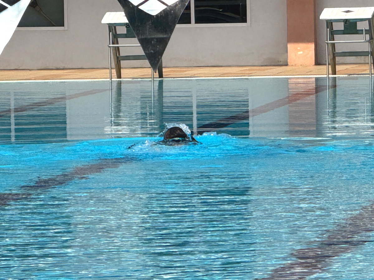 プールでは、2名の若者が泳いでました
