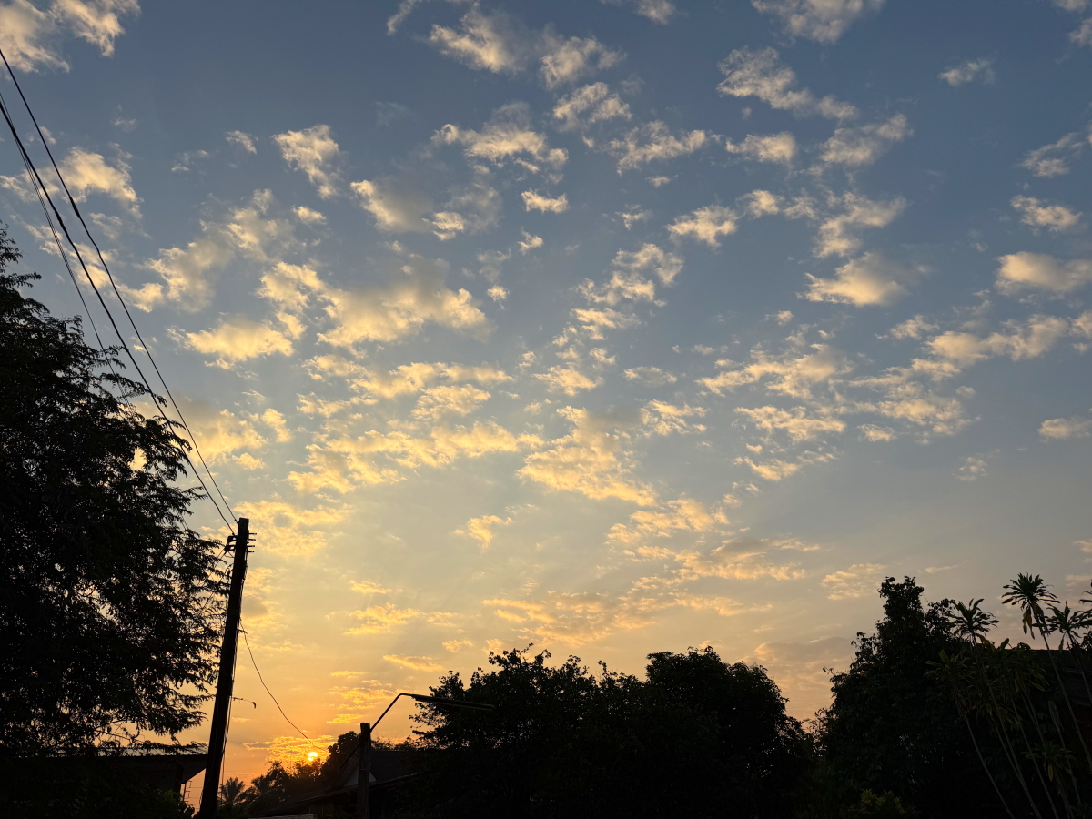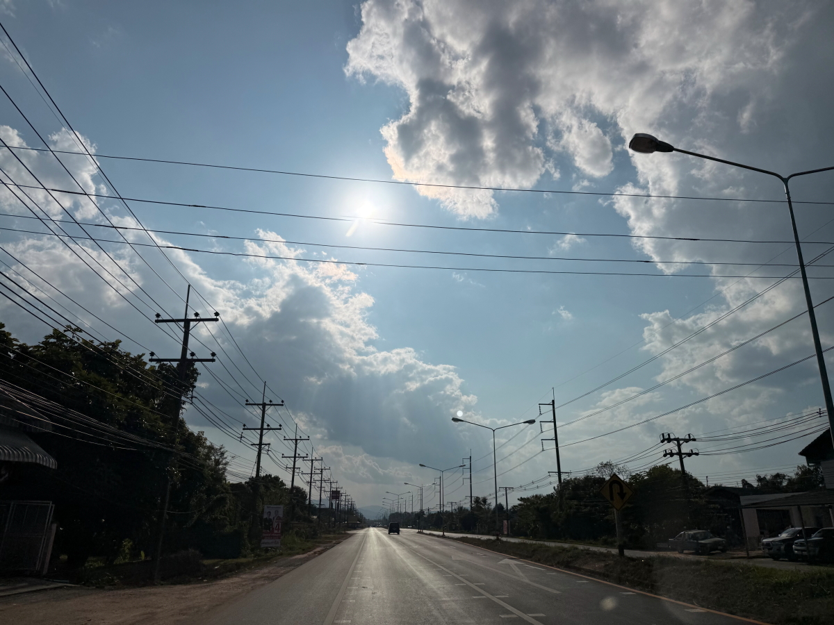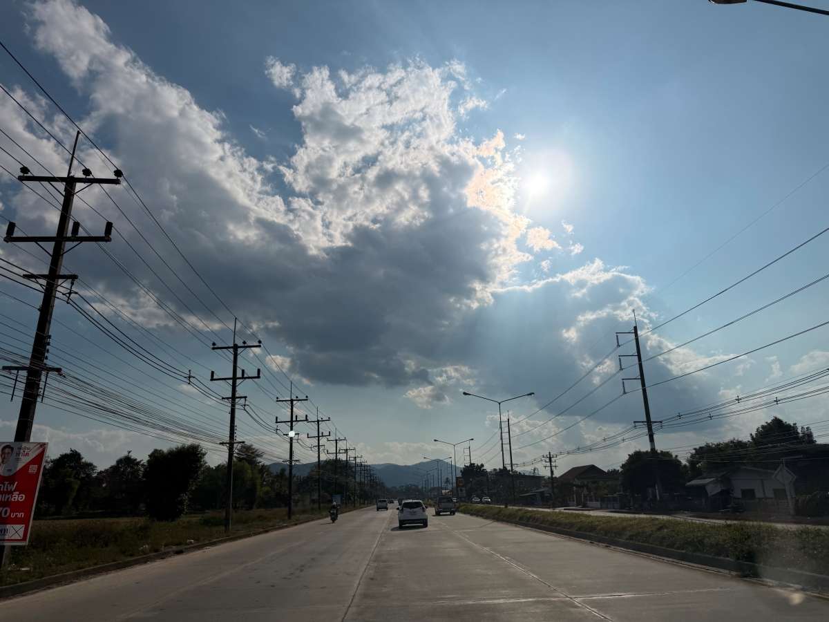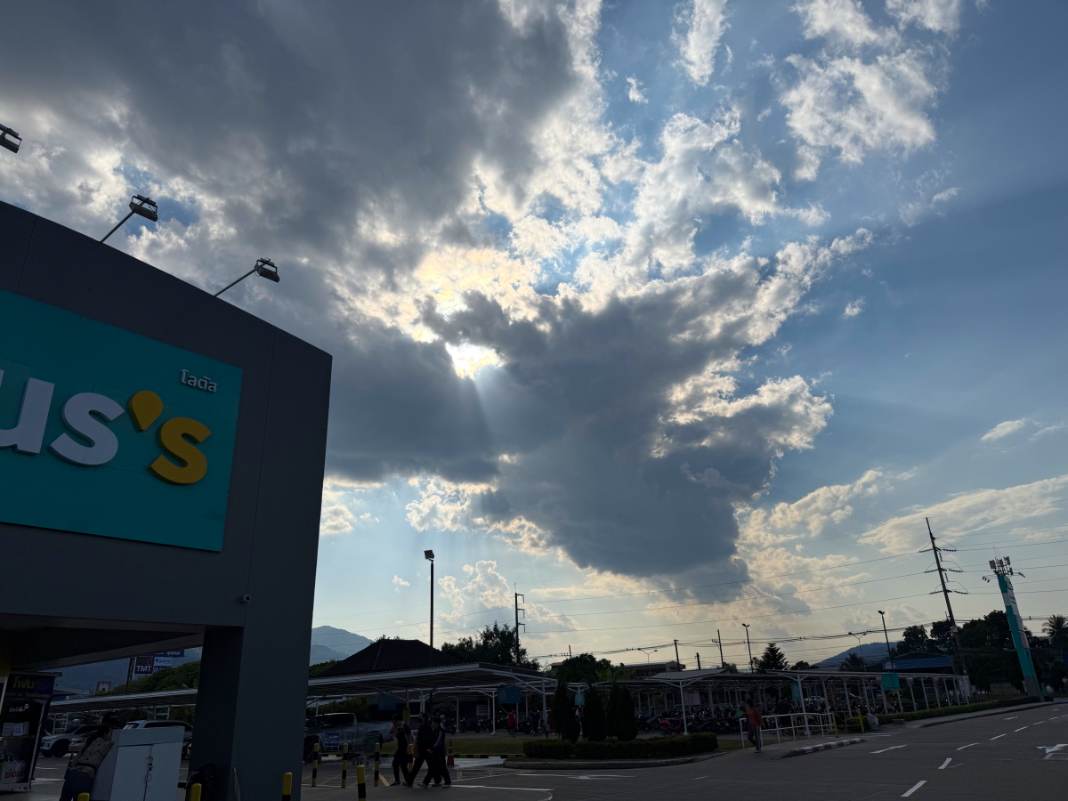 メーチャン市街のいつものスーパー、雲の向こうのお日様から太陽の足が伸びてました
