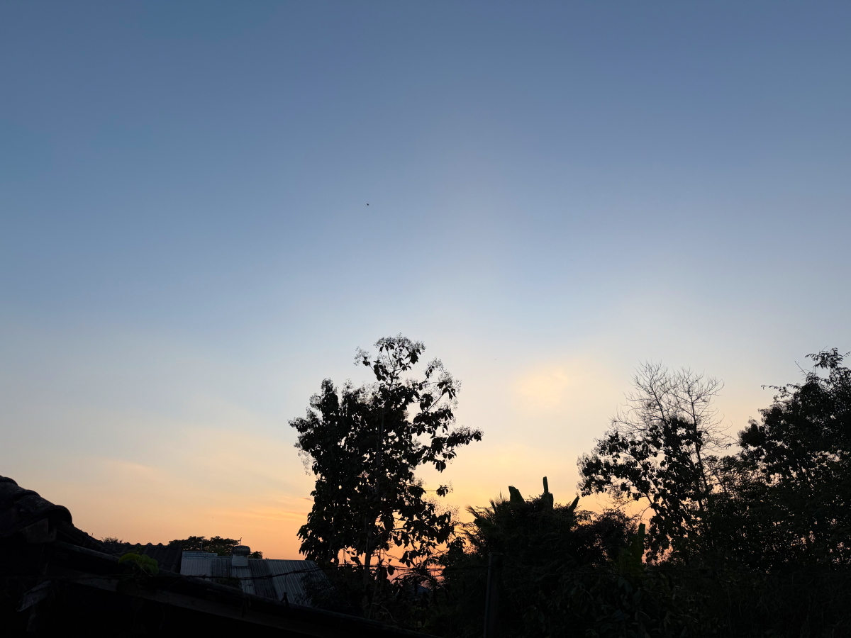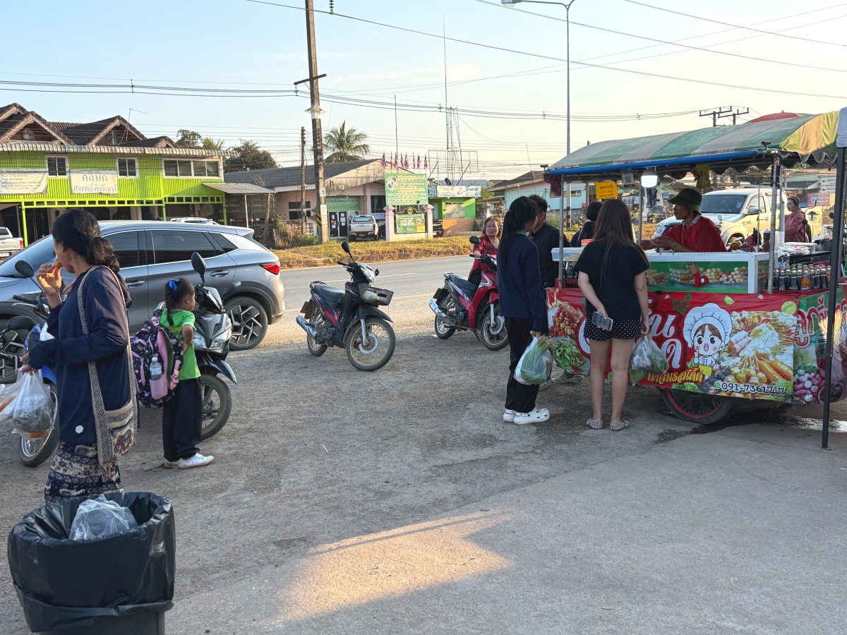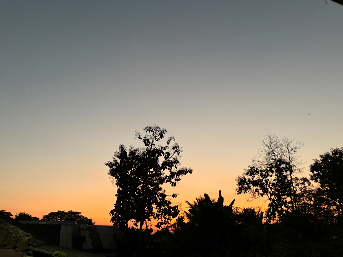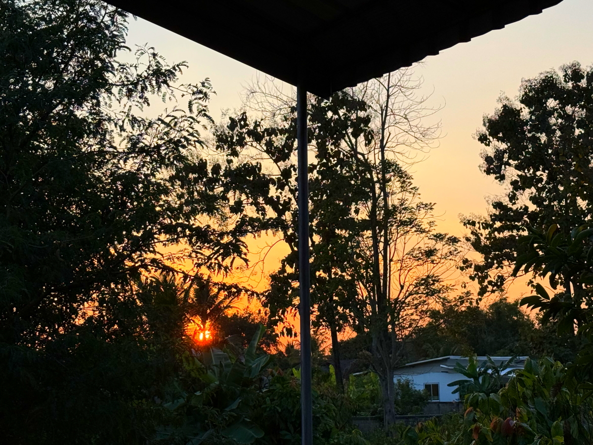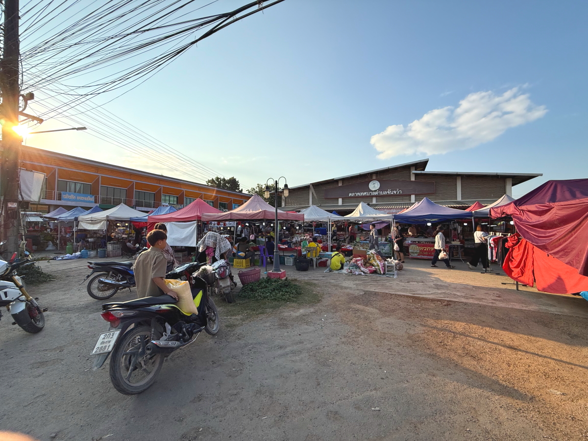メーチャン市街のいつものスーパー、雲の向こうのお日様から太陽の足が伸びてました