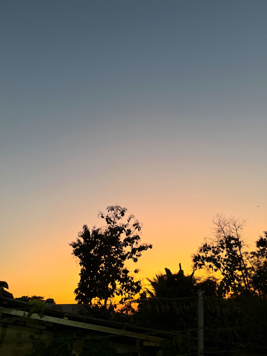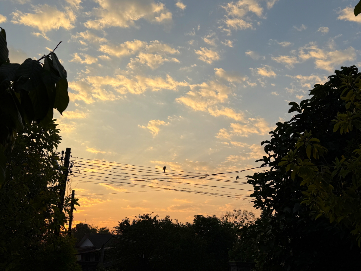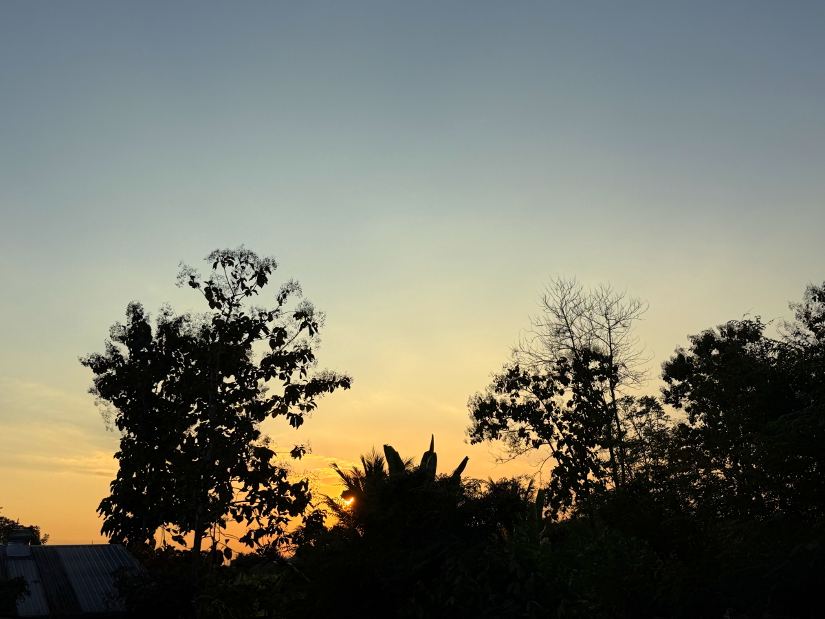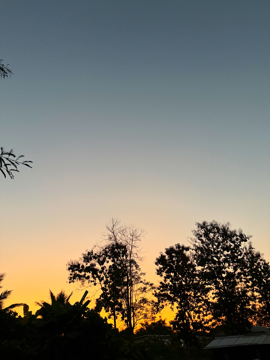 メーチャン市街のいつものスーパー、雲の向こうのお日様から太陽の足が伸びてました
