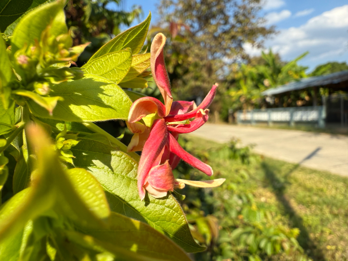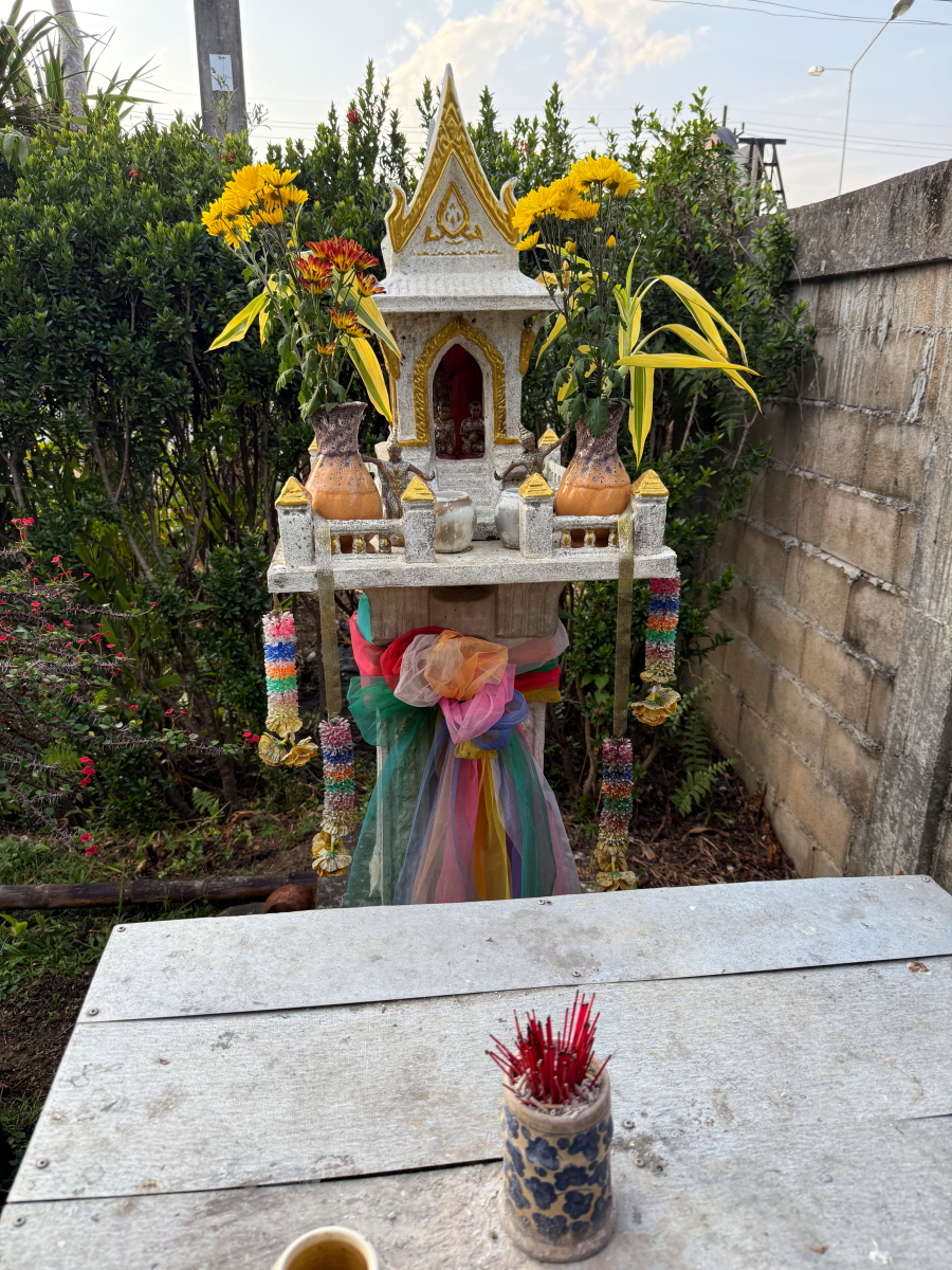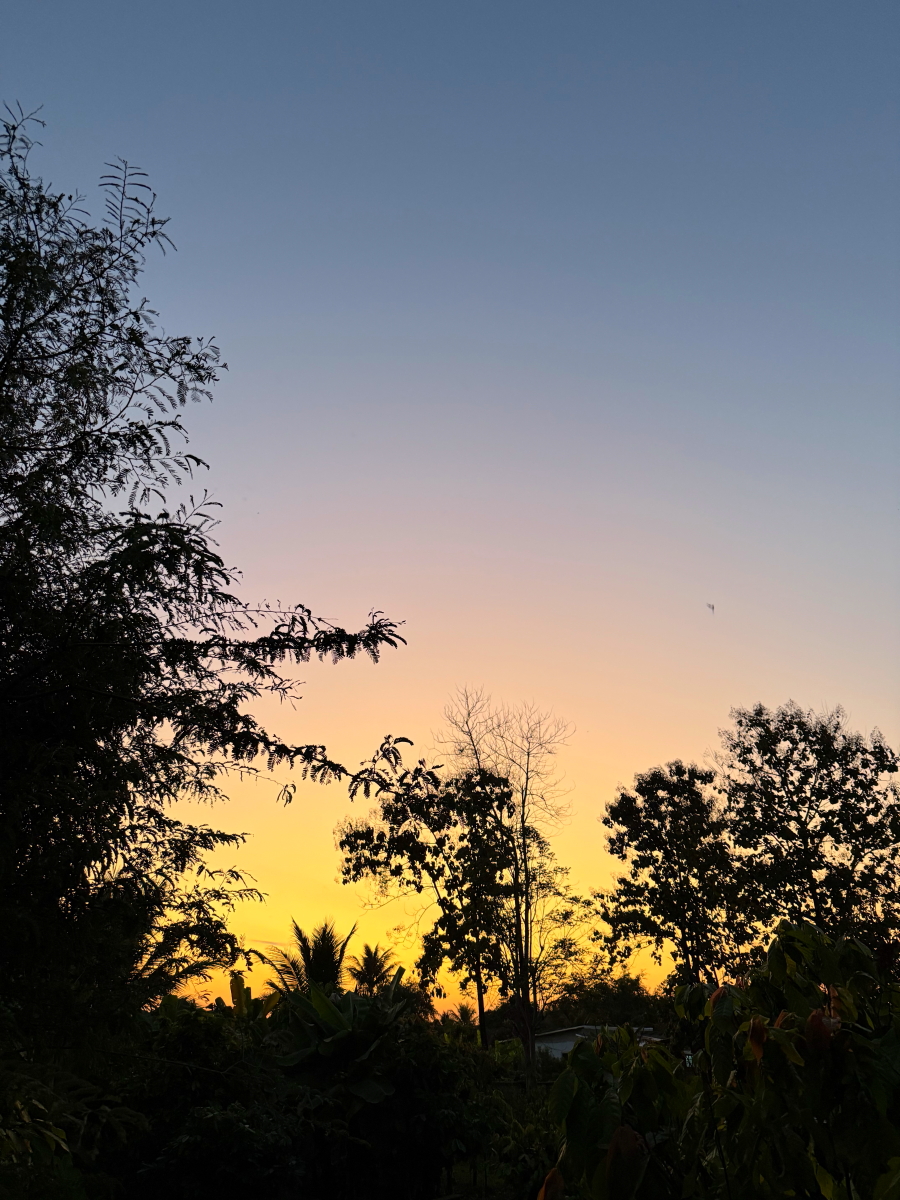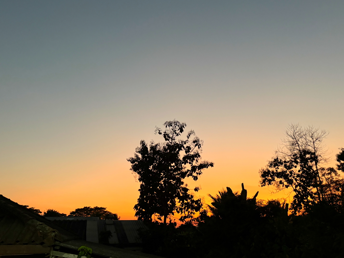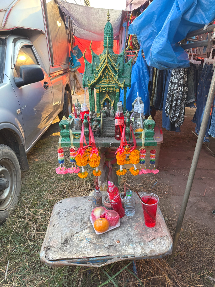 メーチャン市街のいつものスーパー、雲の向こうのお日様から太陽の足が伸びてました
