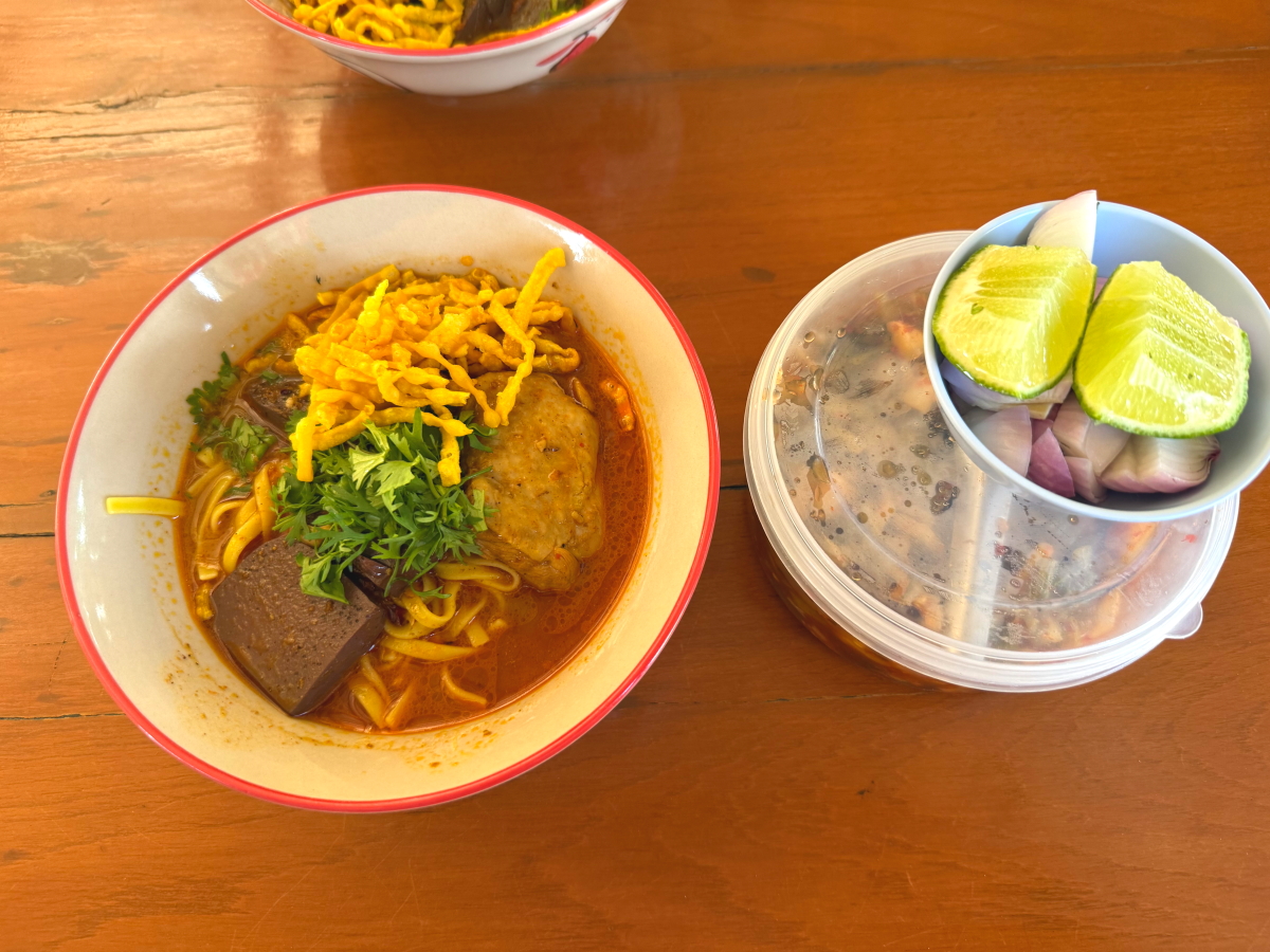 頂いたのはこちらのラーメン、40バーツは格安!