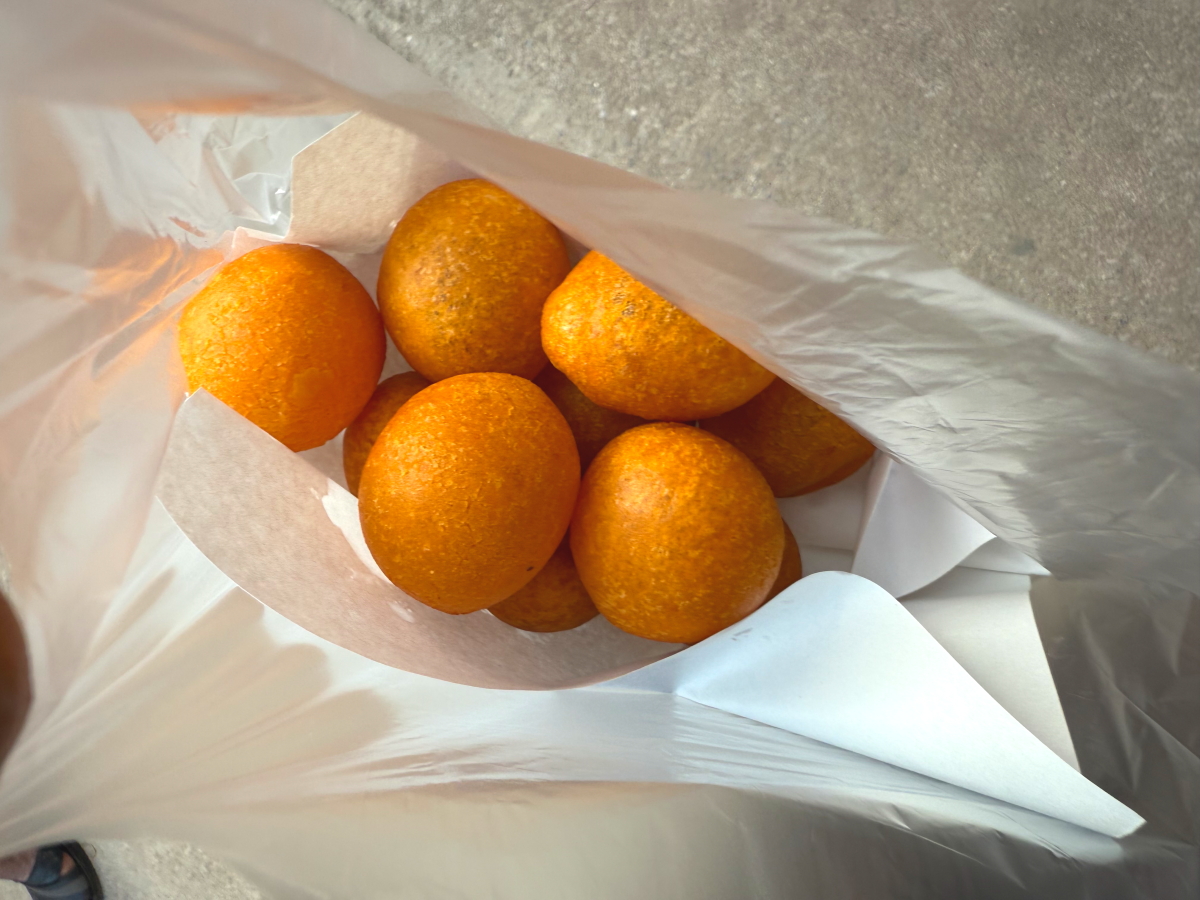 丸い揚げ物のお菓子屋さん